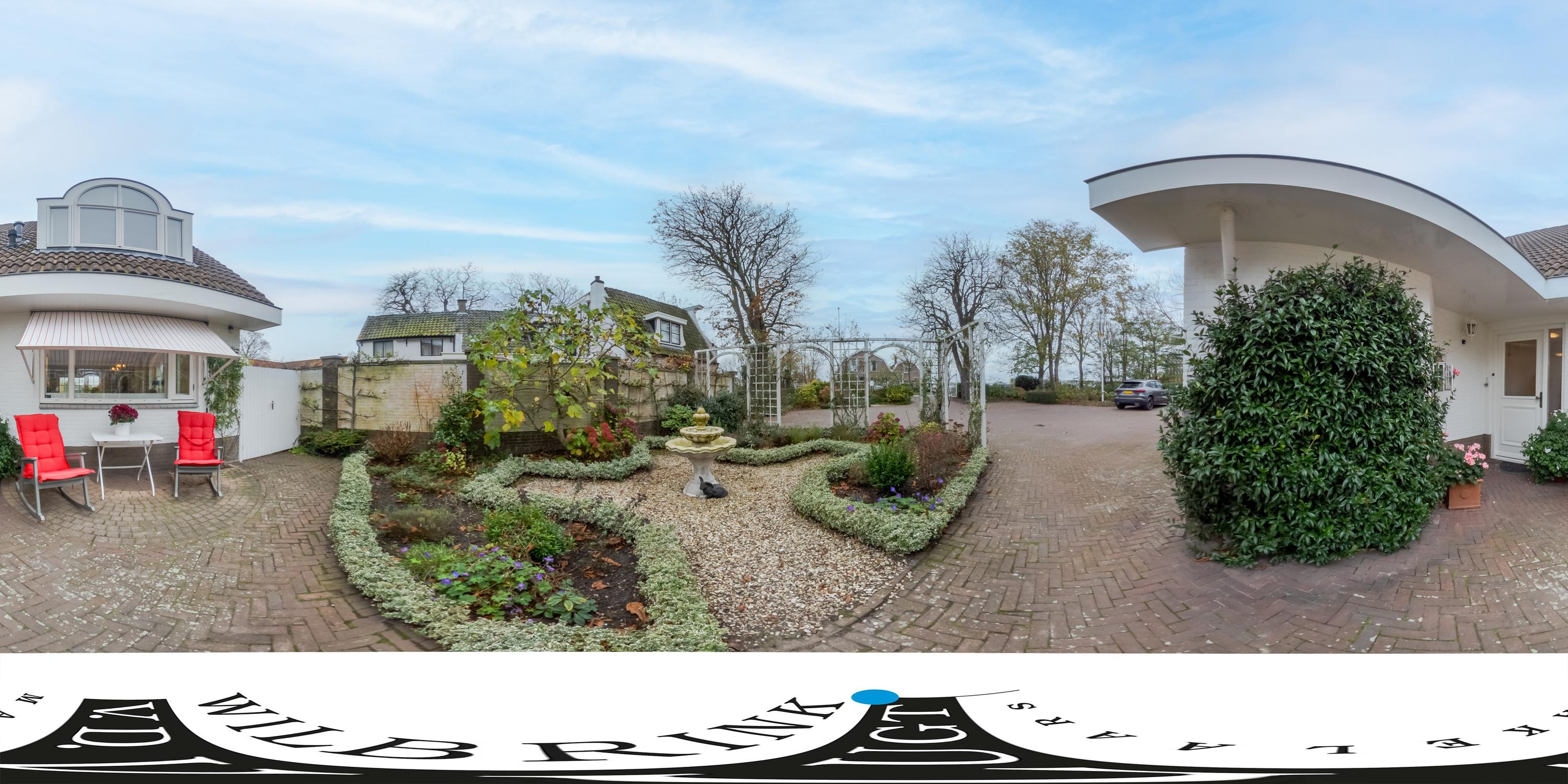 The beautifully landscaped, sunny backyard borders directly on water of the Old Rhine and features a shed and a private jetty. In the front yard is a cozy terrace. In the afternoon and evening you can relax in the sun. The entire garden is equipped with a sprinkler system. In the front garden is parking for three cars on site.