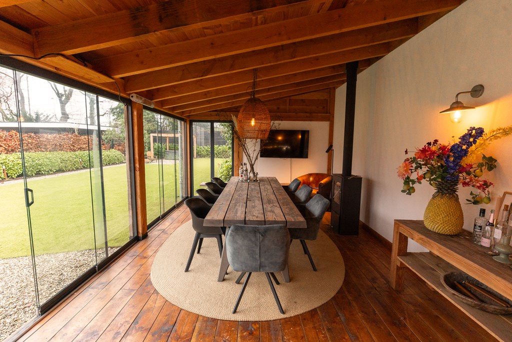 - in het achterste deel van de berging vind je een gezellige tuinkamer van ca. 10,5 m² met openslaande deuren.