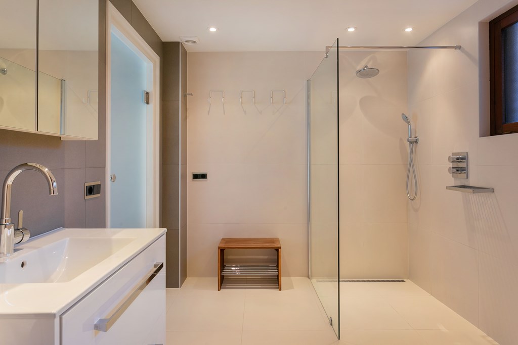 - Heated Indoor Pool: 9 × 3.8 m, with three-phase Bosch jet stream, automatic insulating roller cover, and sliding doors to the terrace.