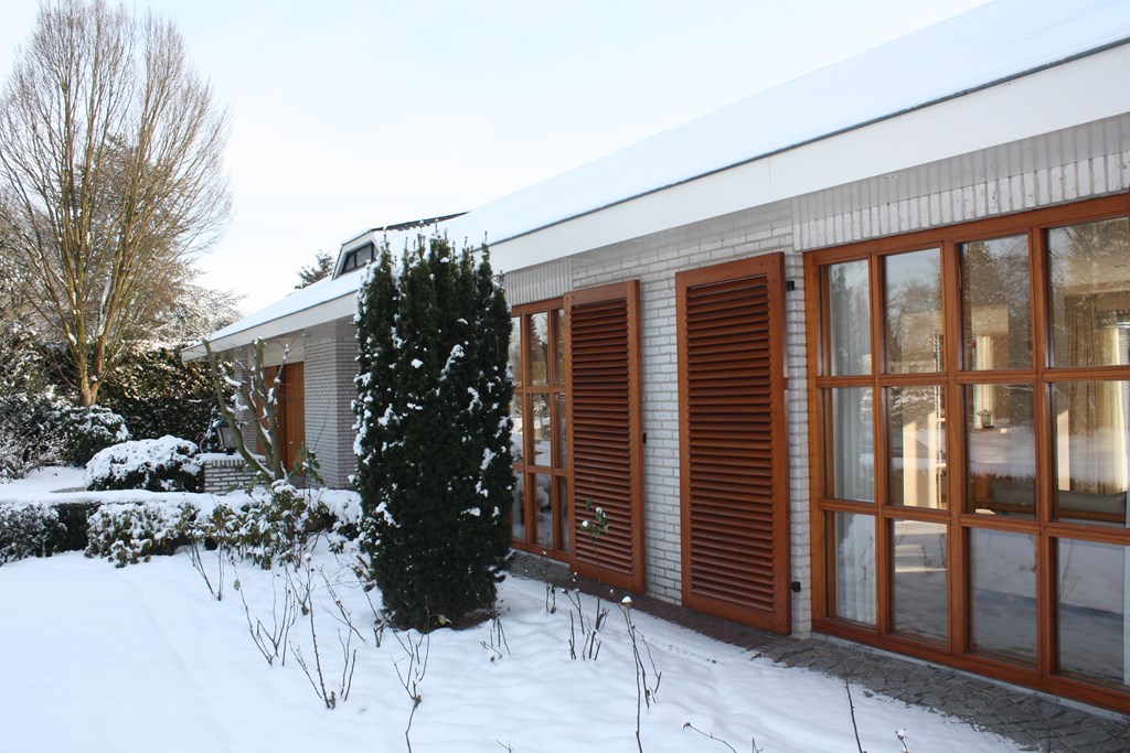 - Three awnings integrated into the eaves (installed 2022), each 13 m wide with 3 m projection