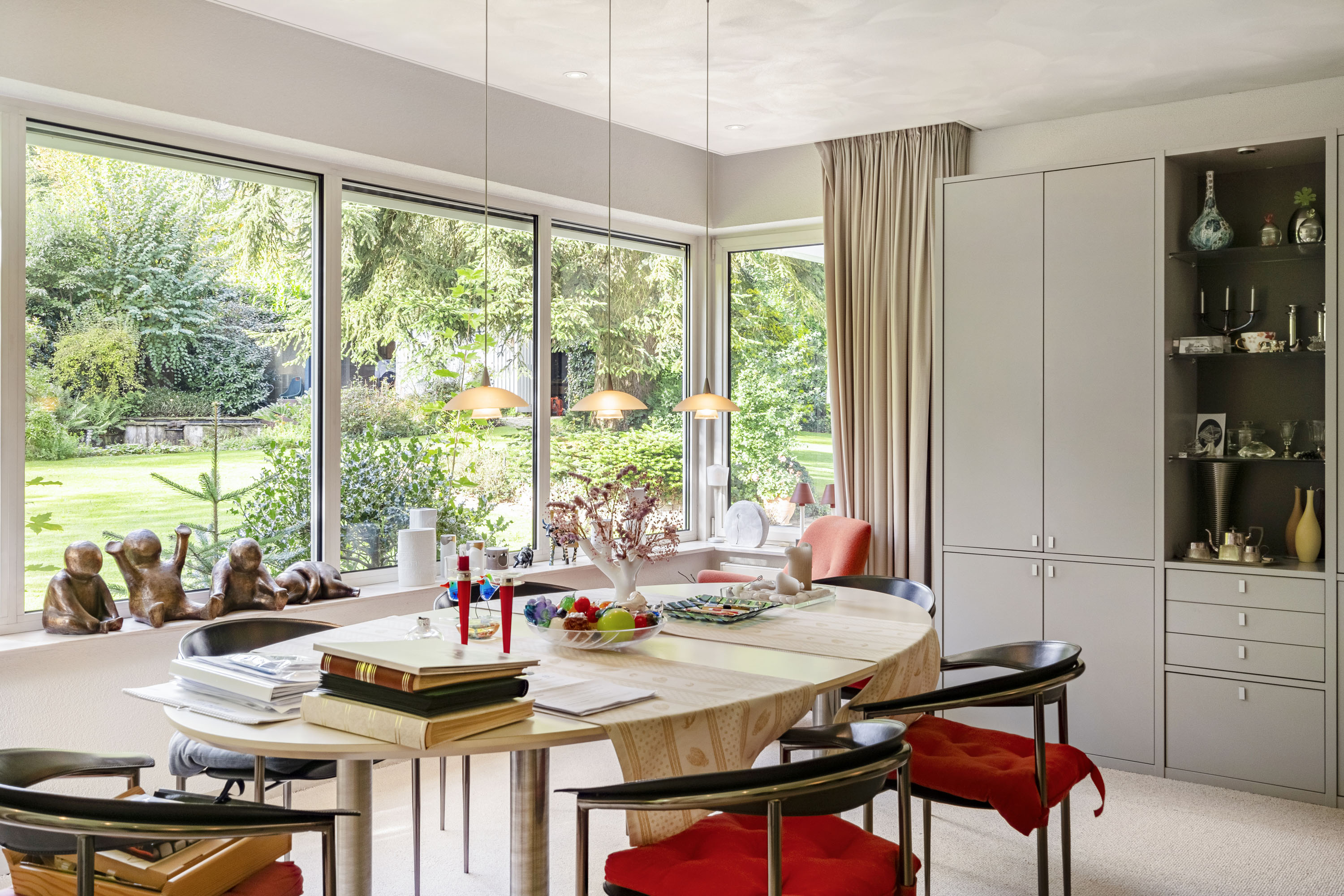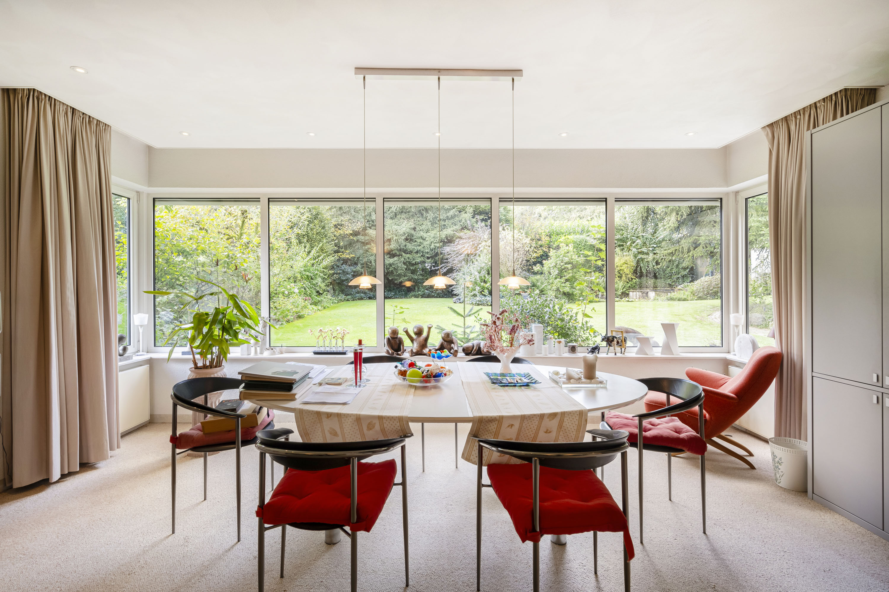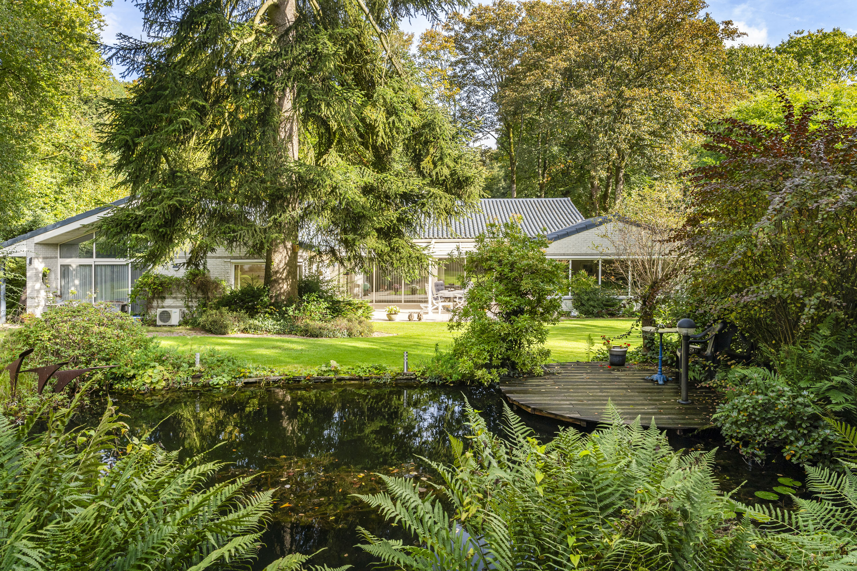 In total peace and privacy, you can enjoy the generous space, the spectacular garden, and the remarkable architecture of this home. The villa is located at the foot of the Posbank nature reserve and on the edge of a charming residential area, just minutes away from the center of Velp with numerous amenities. Major roads are easily accessible, and the airports of Düsseldorf and Amsterdam are both approximately an hour’s drive away.