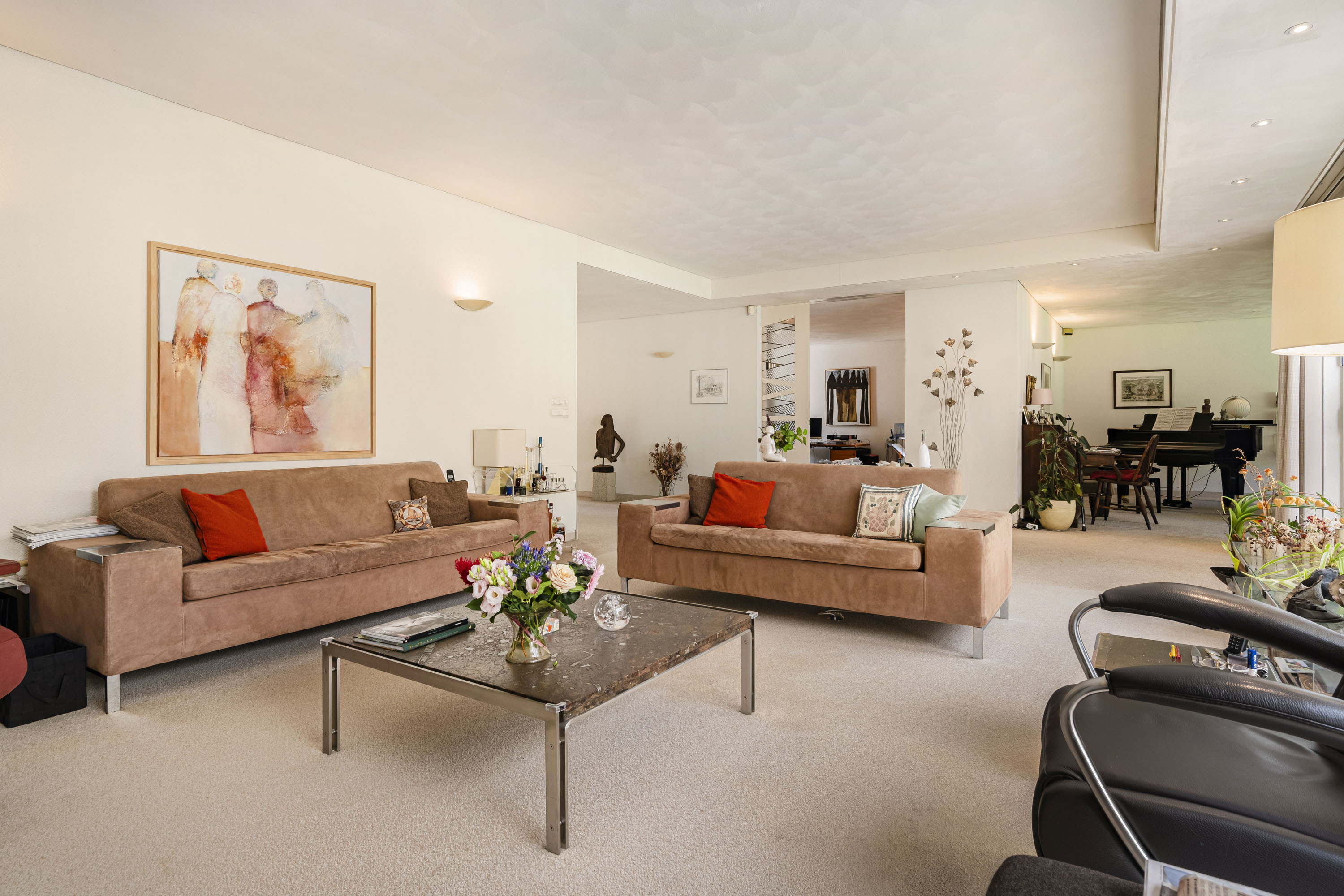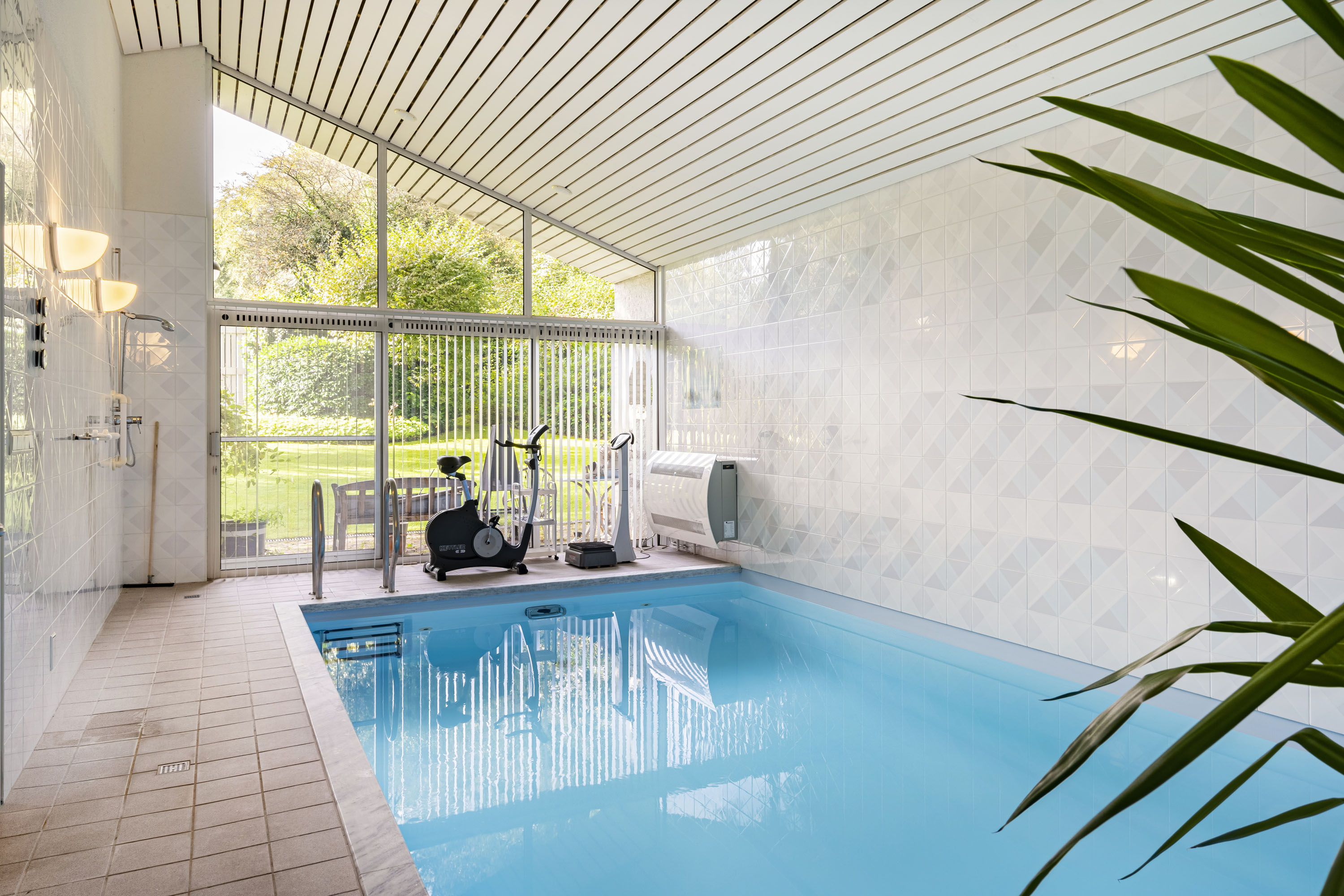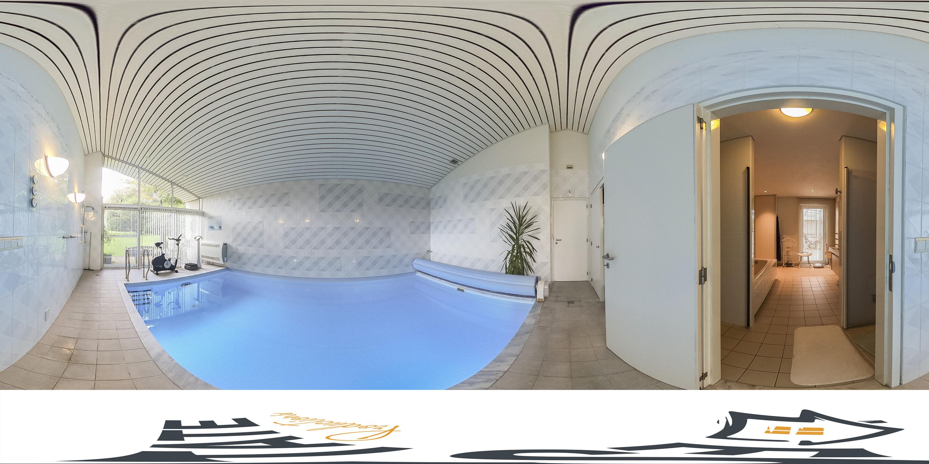 Located in a fantastic and unique location, this exceptionally spacious detached villa features an indoor swimming pool with jet stream.** In addition, the property includes a large wine cellar, a garage for two cars, four bedrooms, and an expansive living area (lounge, dining room, study, and open kitchen) offering stunning views of the beautifully landscaped, sunny garden with plenty of privacy. The property boasts a variety of terraces, borders, and lawns overlooking a gently sloping garden. The surrounding garden ensures complete privacy and includes mature hedges, shrubs, and trees. A stately driveway completes the picture.