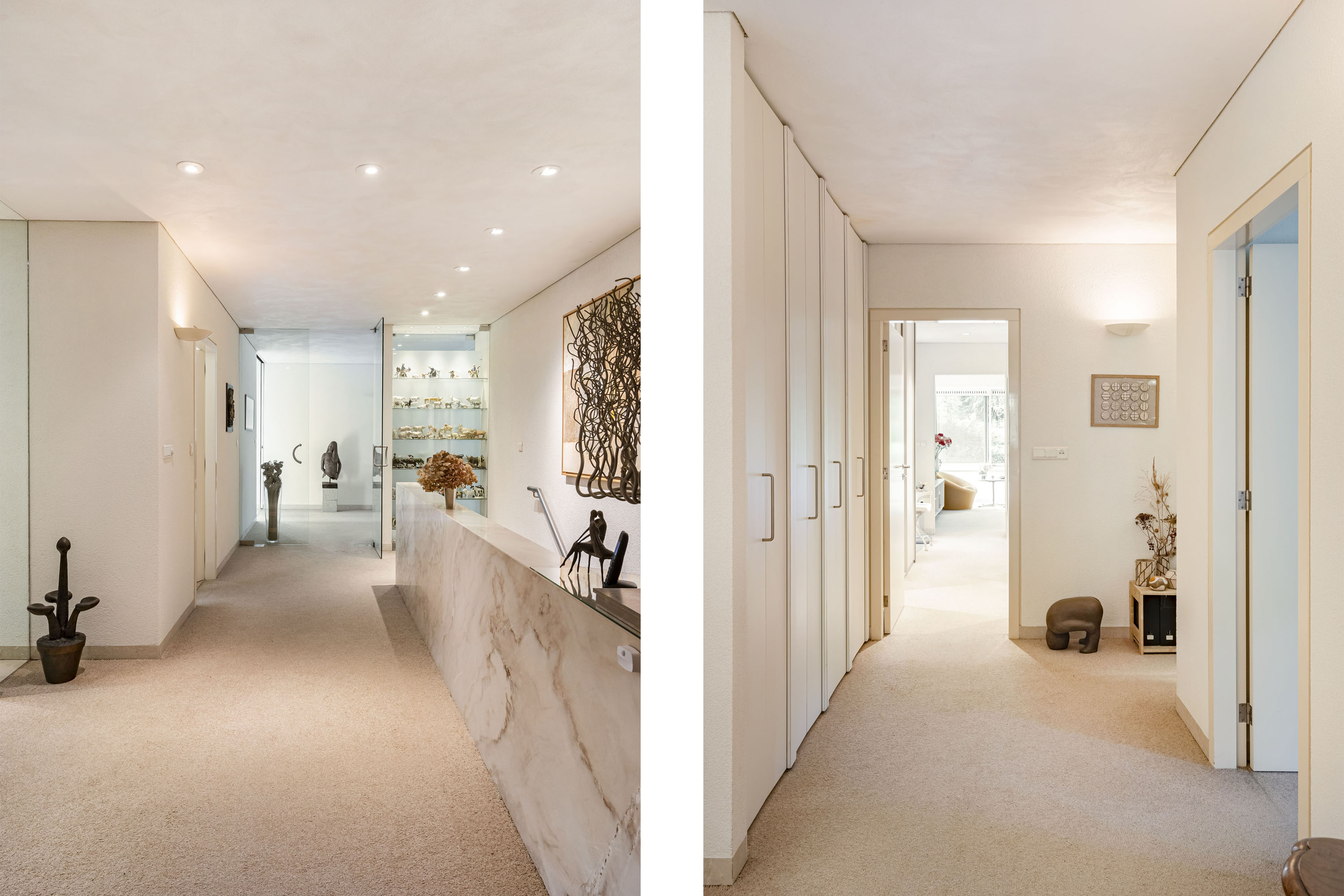 This spacious basement includes a large garage with space for two cars, an electric door, and a charging station for an electric vehicle. There is also a beautiful wine cellar, several storage rooms, a technical room housing the heat pumps for both the house and the indoor pool with jet stream. Residents can access the house directly from the basement.