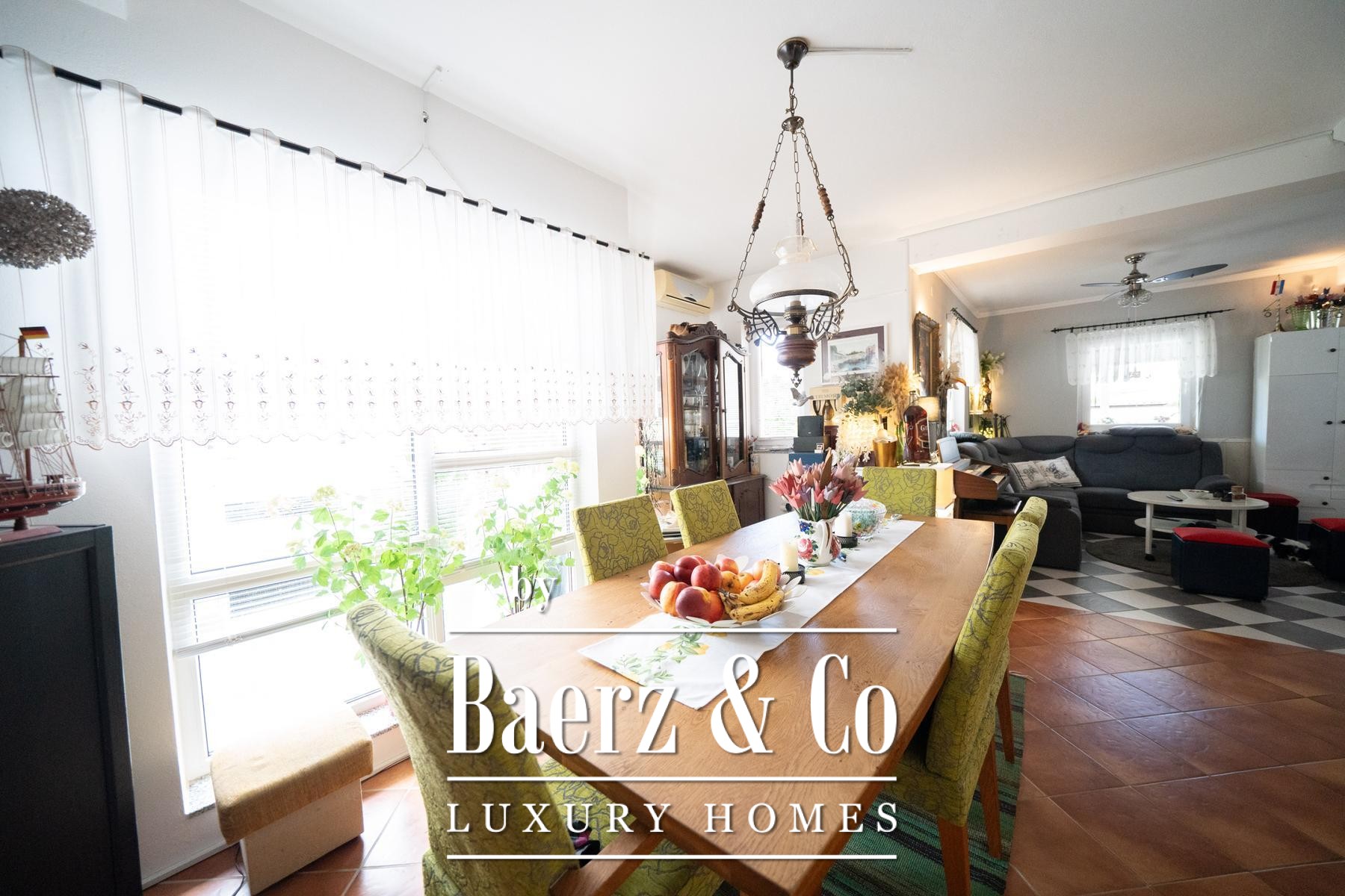 water heating has been installed throughout the house.Solar panels have also been installed, as well as an additional solar hot water system located in the garage/outbuilding of 25 m2. There is also an additional bathroom here.The yard is beautifully landscaped and abundant with greenery and Mediterranean trees that create a special atmosphereThis property is a perfect combination of comfort and functionality, suitable for use throughout the year or as an investment in tourism.The distance from the sea and the beach is only about 70 meters.Neat ownership.We are at your disposal for more information.