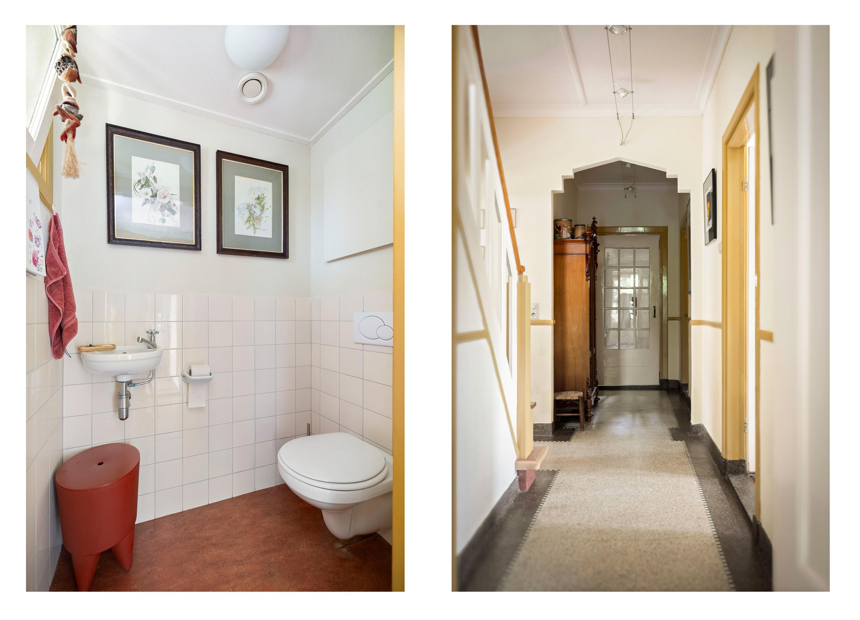 Like many of his colleagues, Bakker designed “total works of art”; exterior and interior flowed effortlessly into one another and every detail was carefully considered. From the stepped bridge in the hall to how the sunlight would scatter the colours of the stained-glass skylights across the floor, the ceilings, the staircase, the bay window, the glazing bars and the unique pentagonal window in the garden room – everything is part of the whole. A house with a character all of its own.