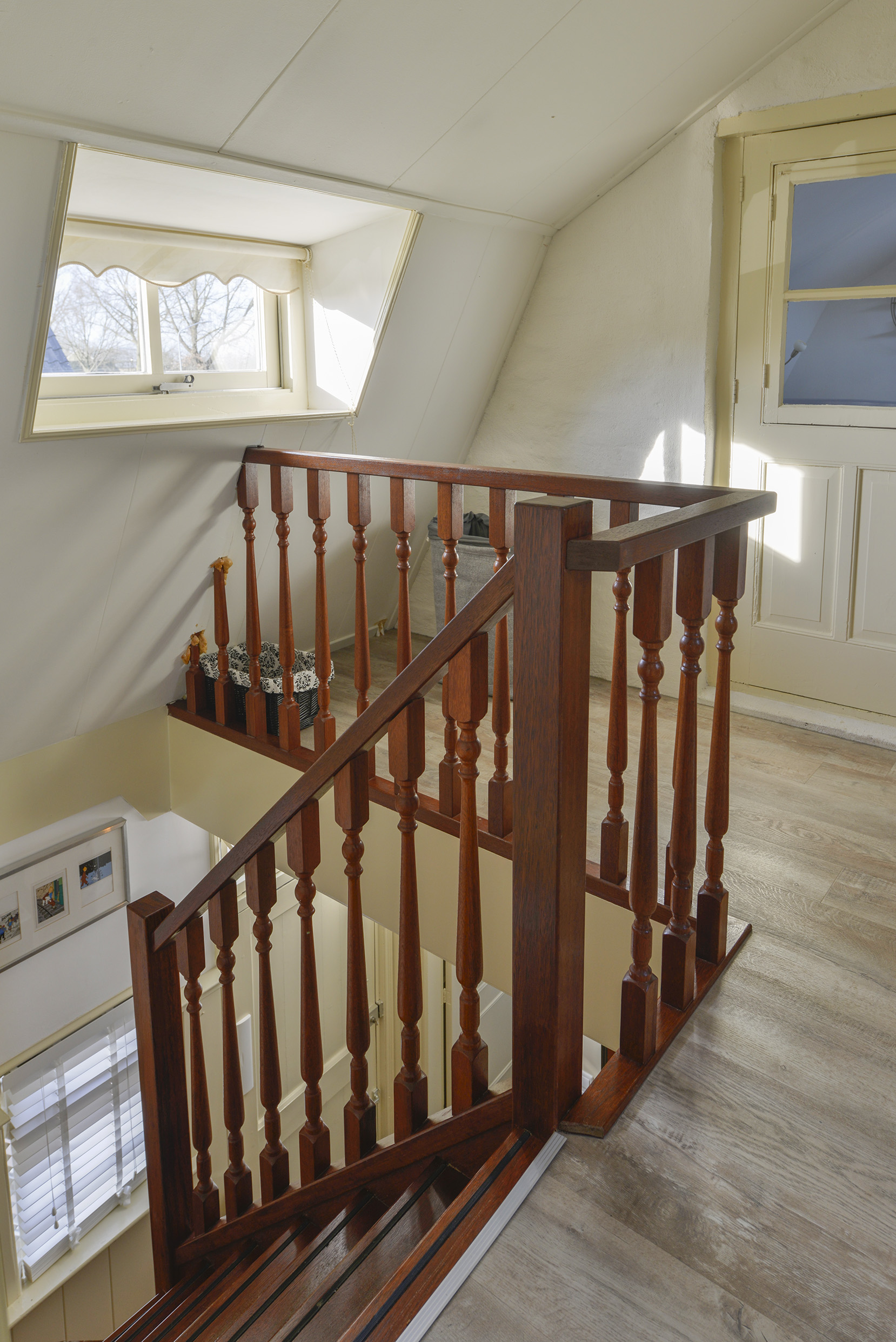 Ground floor: entrance hall with meter cupboard access to the cellar and staircase. Atmospheric and bright living room at the front of the house with an adjoining cosy raised room. From both the hall and the raised room the spacious kitchen is accessible. This modern kitchen was renewed in 2022 and fitted with various built in appliances. There is also a generous utility room with the central heating system and laundry connections.