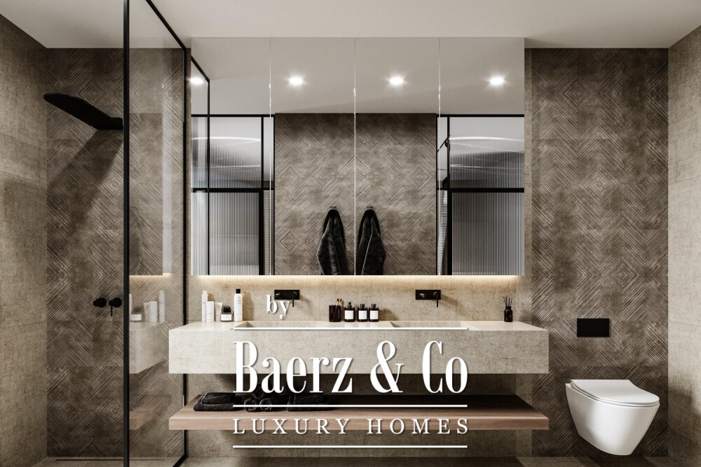 The natural light is embraced through floor-to-ceiling glass and next-generation aluminum joinery, softened by custom brise-soleils. Living spaces unfold as open, continuous zones—kitchen, dining area, and lounge—leading seamlessly to the private rooftop terrace, where a jacuzzi and summer kitchen invite serene gatherings above the city. Four bedrooms, four bathrooms, and two guest toilets ensure privacy and ease, complemented by amenities such as a sauna, loggia, and generous storage.