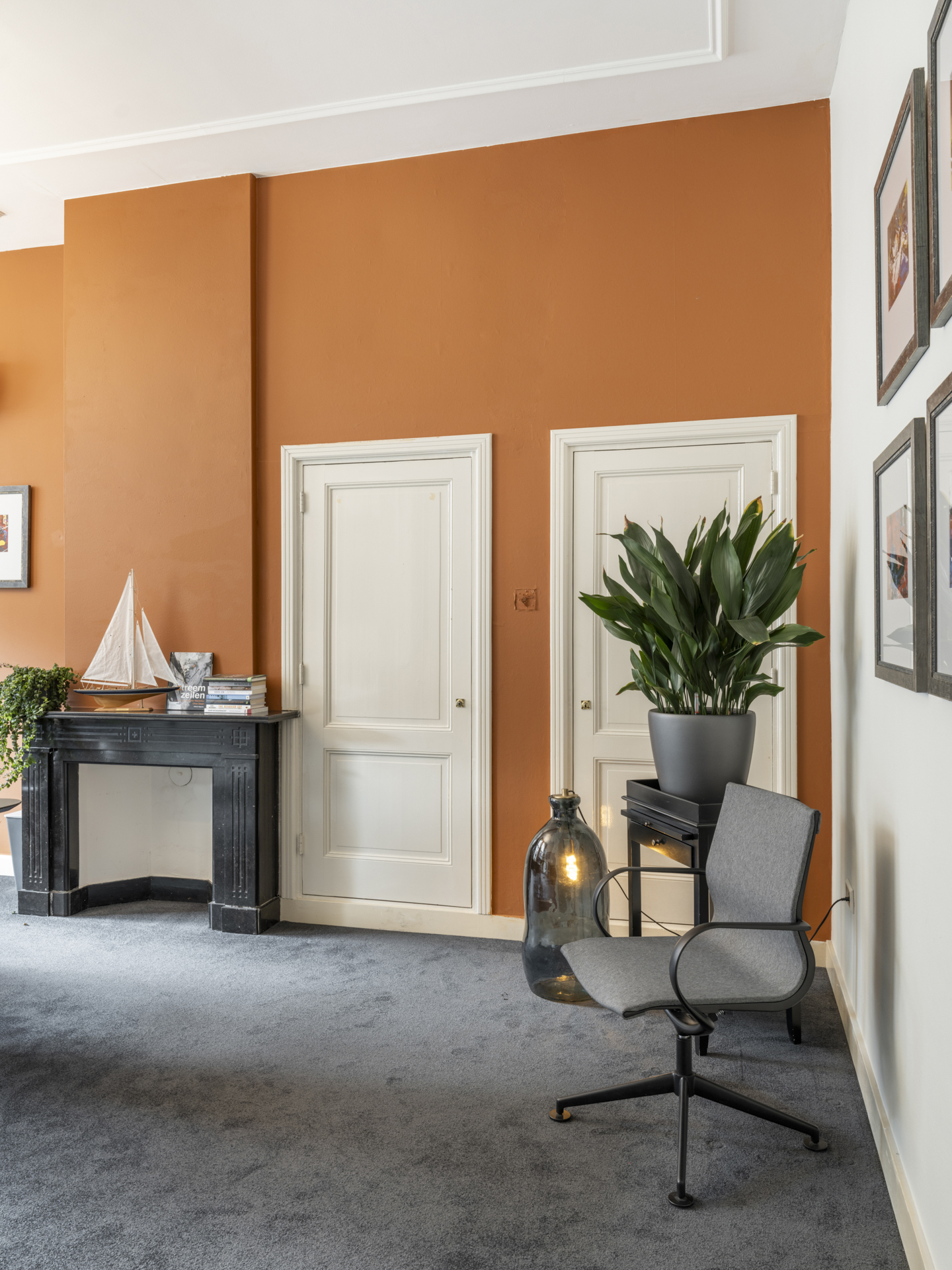 Period elements such as an original hardstone staircase, marble floors, intricate plasterwork, and leaded glass appear throughout. The flow of the home is anchored by a dramatic central hallway, with distinct living and working rooms branching off. Carefully updated, the villa marries heritage with modern comfort: high-grade insulation, HR++ double glazing, 23 solar panels, and three heating systems.