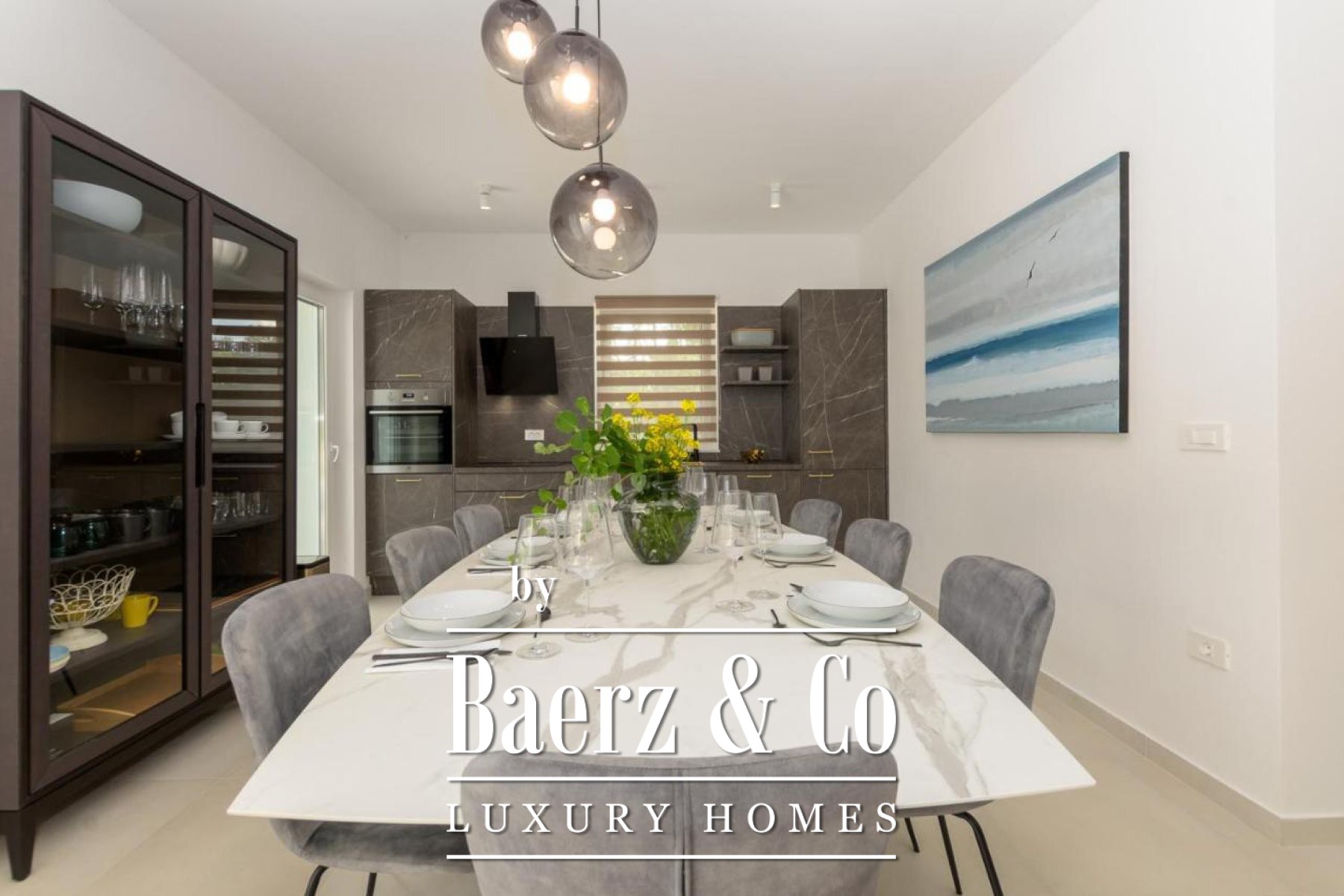 Villa in Žminj offers a discreet retreat on a landscaped 1,100 m² garden, removed from the pulse of city life. This thoughtfully designed villa spans 160 m² over two levels, its interiors shaped by a respected designer in collaboration with the owner. Generous living spaces on the ground floor feature a spacious salon and a modern kitchen, both oriented toward a large sliding wall that opens directly to a 50 m² pool. The same level provides a guest bedroom and a refined guest bathroom.