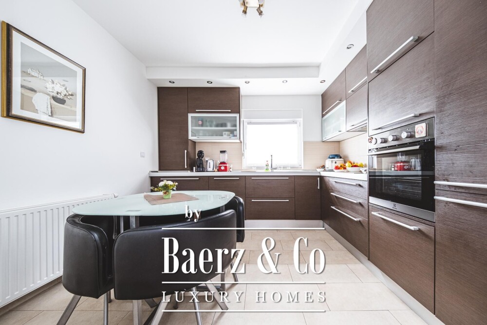 Op de bovenste verdieping bevinden zich drie slaapkamers—waaronder een serene master en twee kinderkamers—verder aangevuld met een badkamer en twee brede terrassen die het uitzicht omlijsten. In totaal beschikt de woning over vijf slaapkamers en vijf badkamers waardoor er volop ruimte is voor gezin en gasten. Vloerverwarming zorgt voor comfort in alle betegelde ruimten. Met een perceel van 1.049 m² komen rust en nabijheid van het levendige Zagreb samen, waardoor dit herenhuis in Črnomerec uitnodigt tot exclusief en privé wonen.