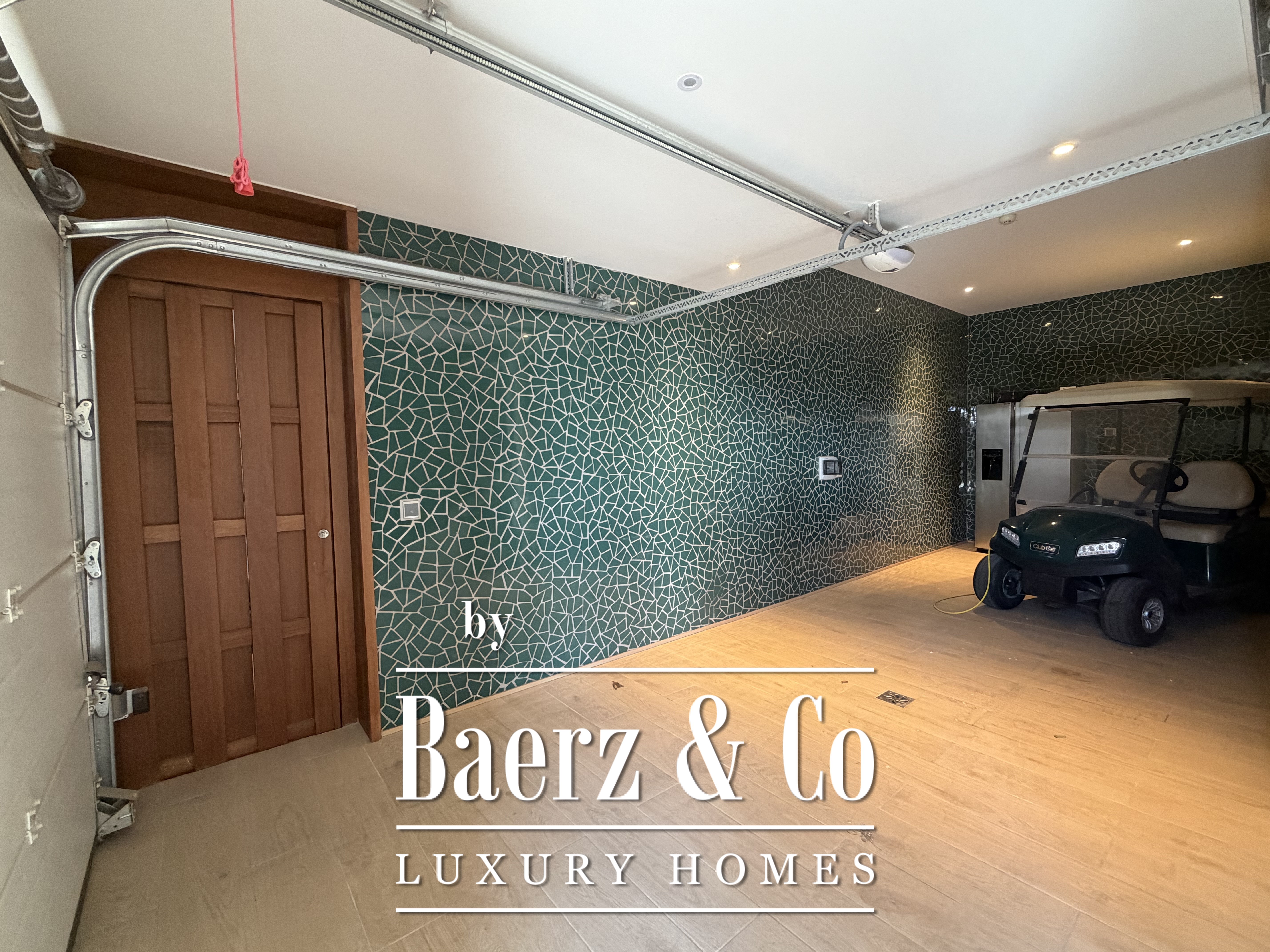 De woning beschikt over een garage voor één auto en een buggy en wordt volledig gemeubileerd verkocht met luxe meubilair, inclusief tuinmeubelen. De ramen zijn voorzien van automatische zonwering die het zonlicht reguleert zonder het natuurlijke licht te verliezen.