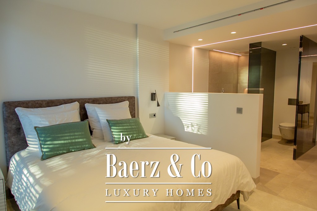 Deze moderne villa in Alcúdia biedt vier ruime slaapkamers, elk met en-suite badkamer, en een master suite met inloopkast en een privé overdekt terras. Het royale ontwerp is gericht op comfort en privacy en vloeit moeiteloos over in een Boffi keuken, een ruime woon- en eetkamer en aansluitende terrassen. Twee zwembaden en een onbelemmerd uitzicht over de baai van Pollensa en het Tramuntana-gebergte zorgen voor een serene, visuele ervaring gedurende het hele jaar.
