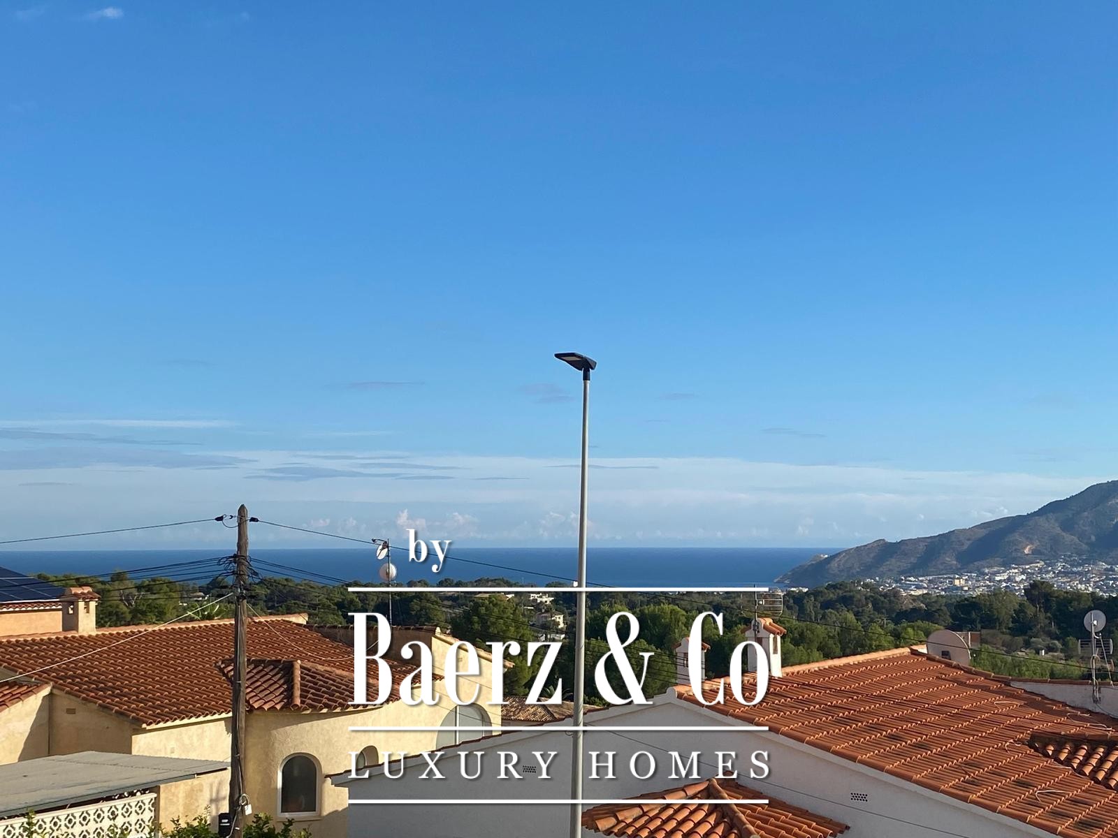 Binnen opent de heldere en ruime woonkamer naar een balkon met panoramisch uitzicht op bergen en zee. De grote keuken heeft ook toegang tot het balkon, perfect om maaltijden met uitzicht te genieten. Twee slaapkamers delen een complete badkamer op deze verdieping.