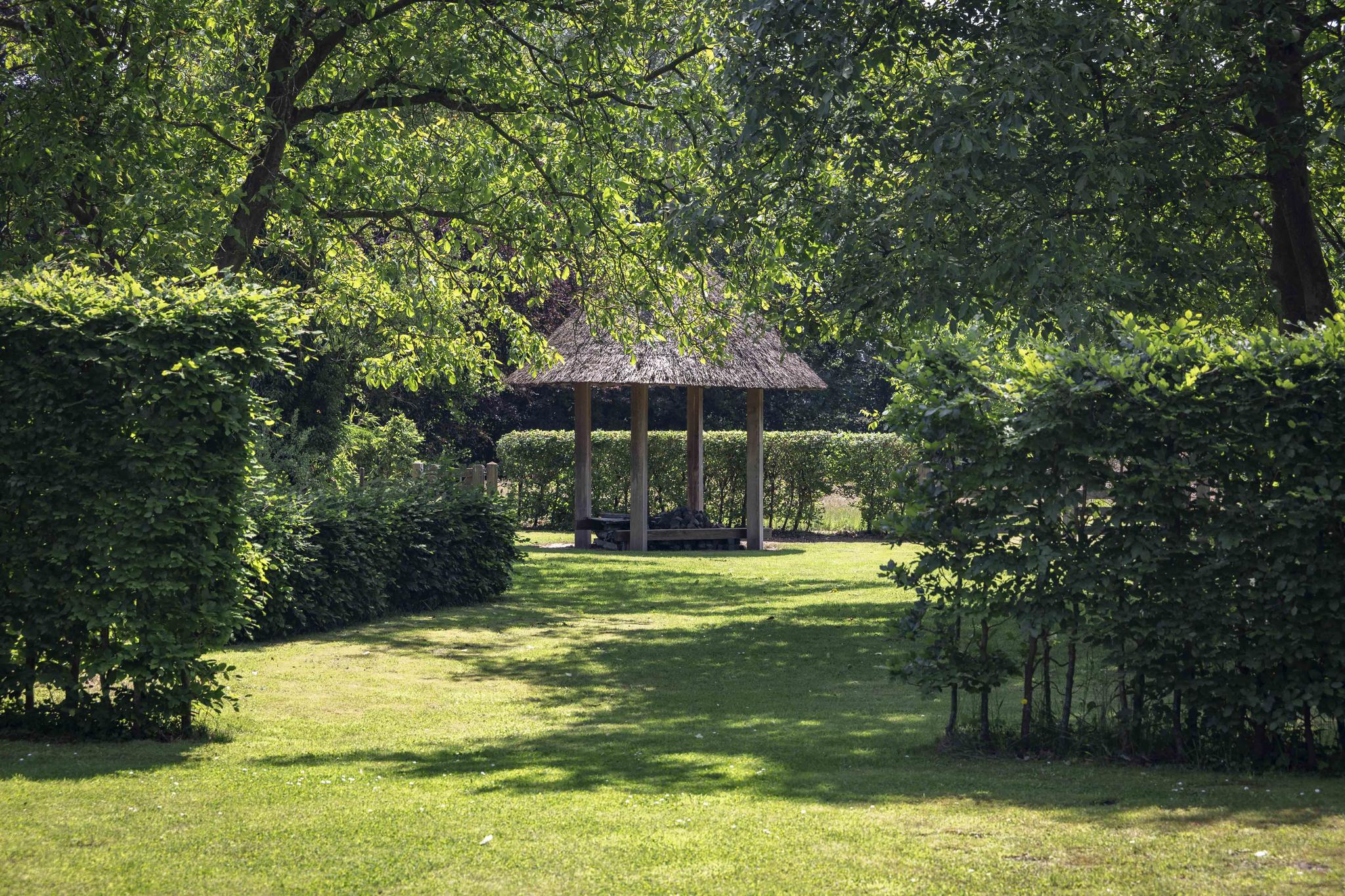 Zo modern als het huis vanbinnen is, zo lieflijk en schilderachtig is de tuin. Als een waar groen paradijs, met grote gazons, een boomgaard en schitterende terrassen. Even behoefte aan een frisse neus? Achter in de tuin is de oever van het Twentekanaal te bereiken middels een bruggetje.