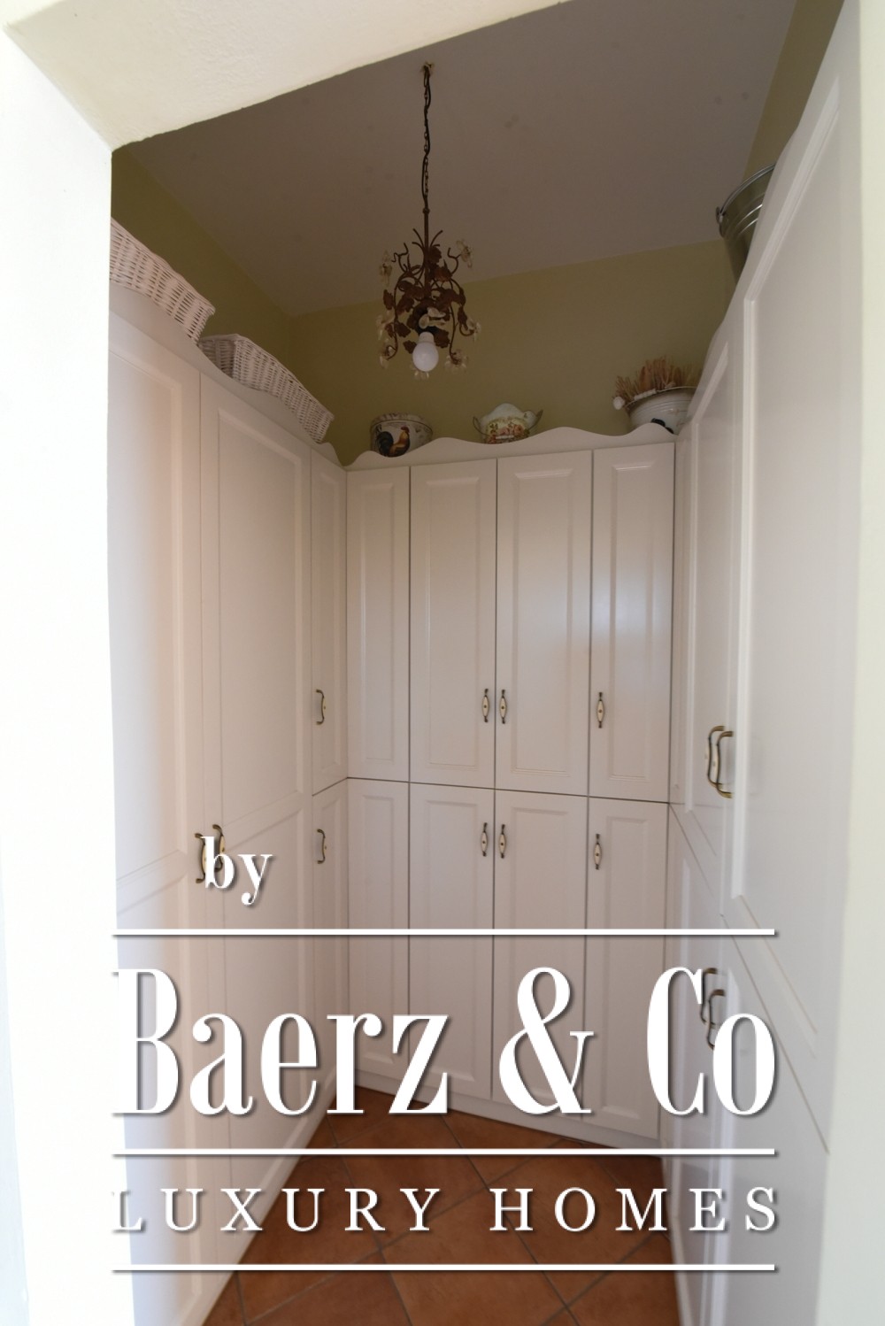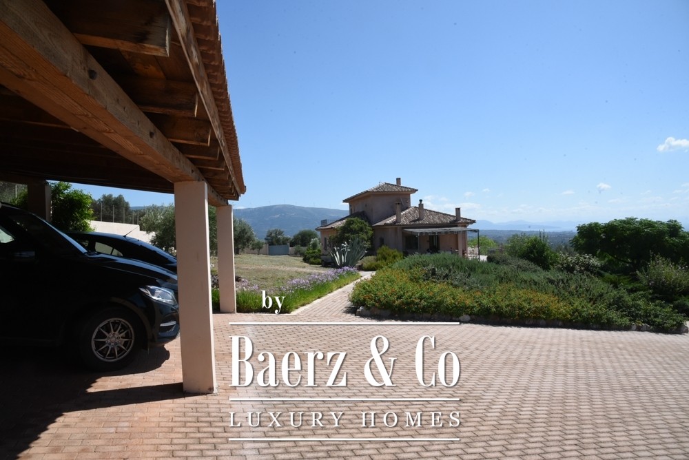 Ook het exterieur is indrukwekkend. De villa ligt op een prachtig aangelegd perceel van 5.000 m² met volwassen bomen, verzorgde gazons en bloeiende tuinen rondom een fraai zwembad. Er is overdekte parkeergelegenheid voor vier auto’s, evenals een technische ruimte en een extra buitengebouw dat eenvoudig kan worden omgevormd tot een gastenverblijf. Twee afgesloten ingangen met elektrische poorten garanderen privacy en gemakkelijke toegang.