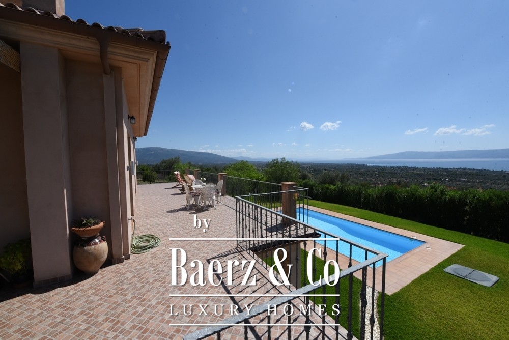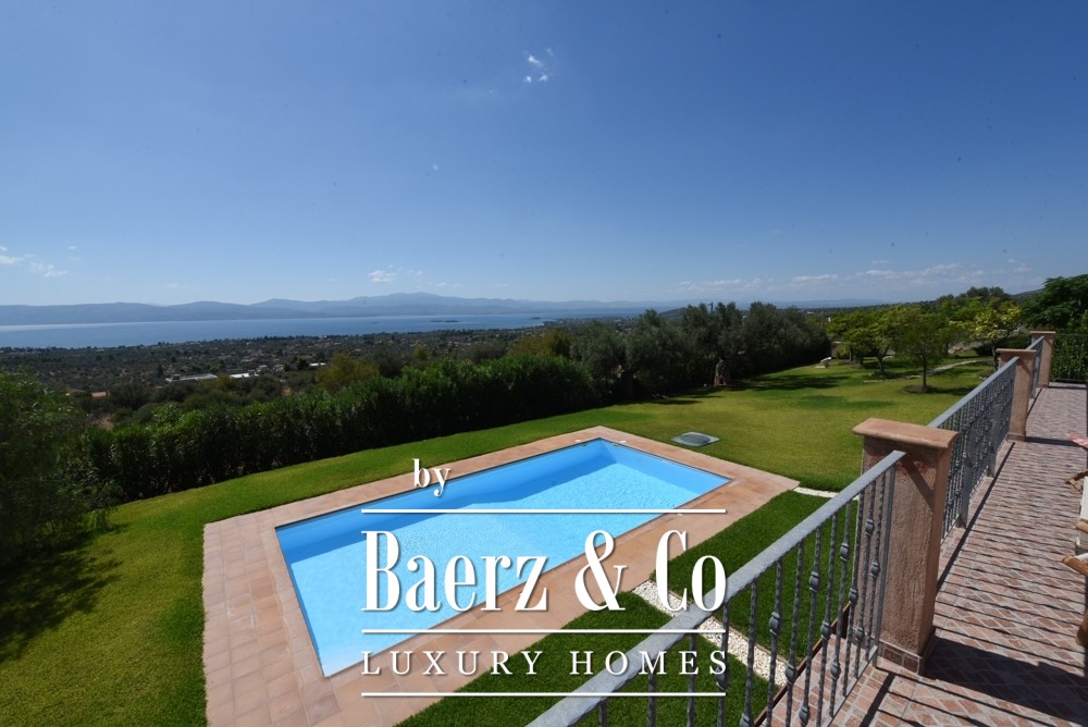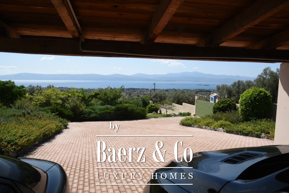 Gelegen in het rustige landschap van Amarynthos biedt deze elegante villa in Toscaanse stijl een verfijnde combinatie van mediterrane charme en modern comfort. De woning werd gebouwd in 2011, is uitstekend onderhouden en beschikt over een woonoppervlak van 365 m² verdeeld over drie niveaus, met een onbelemmerd uitzicht op zowel de zee als de omliggende bergen.