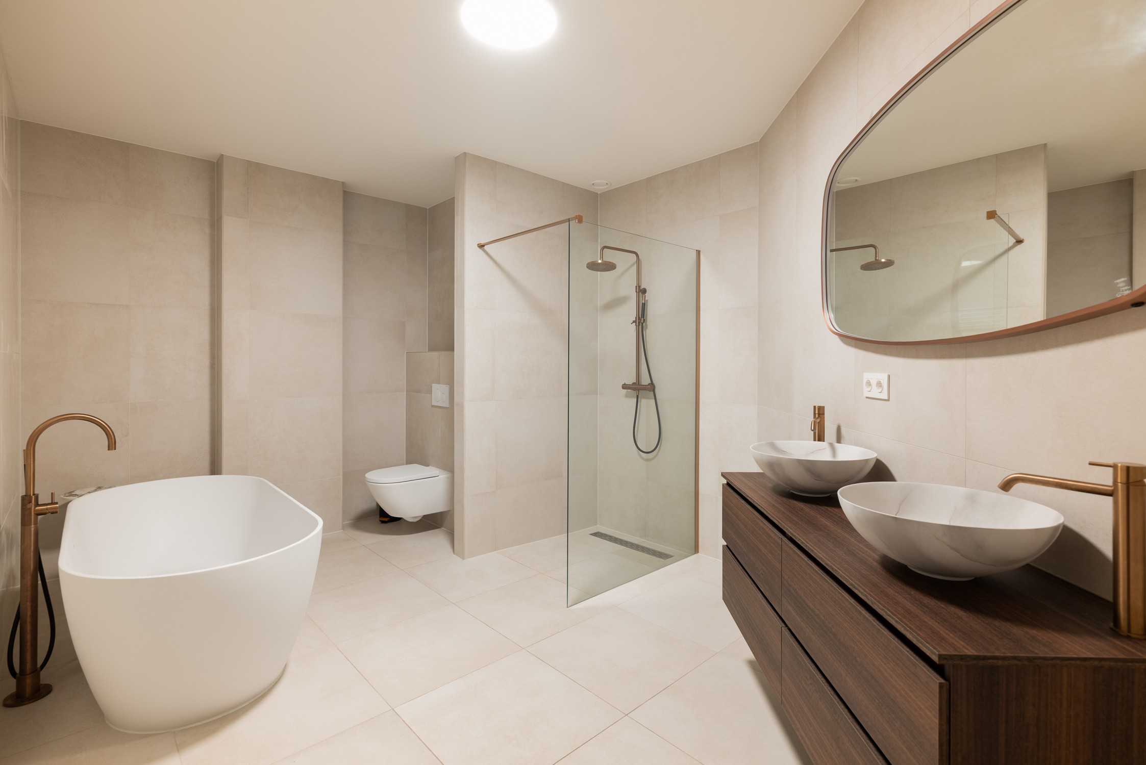 Het appartement beschikt over drie volwaardige slaapkamers, ieder met optimale maatvoering. De master bedroom heeft een luxe ensuite badkamer en een rustige ligging. De tweede badkamer is eveneens modern uitgevoerd en centraal gelegen.