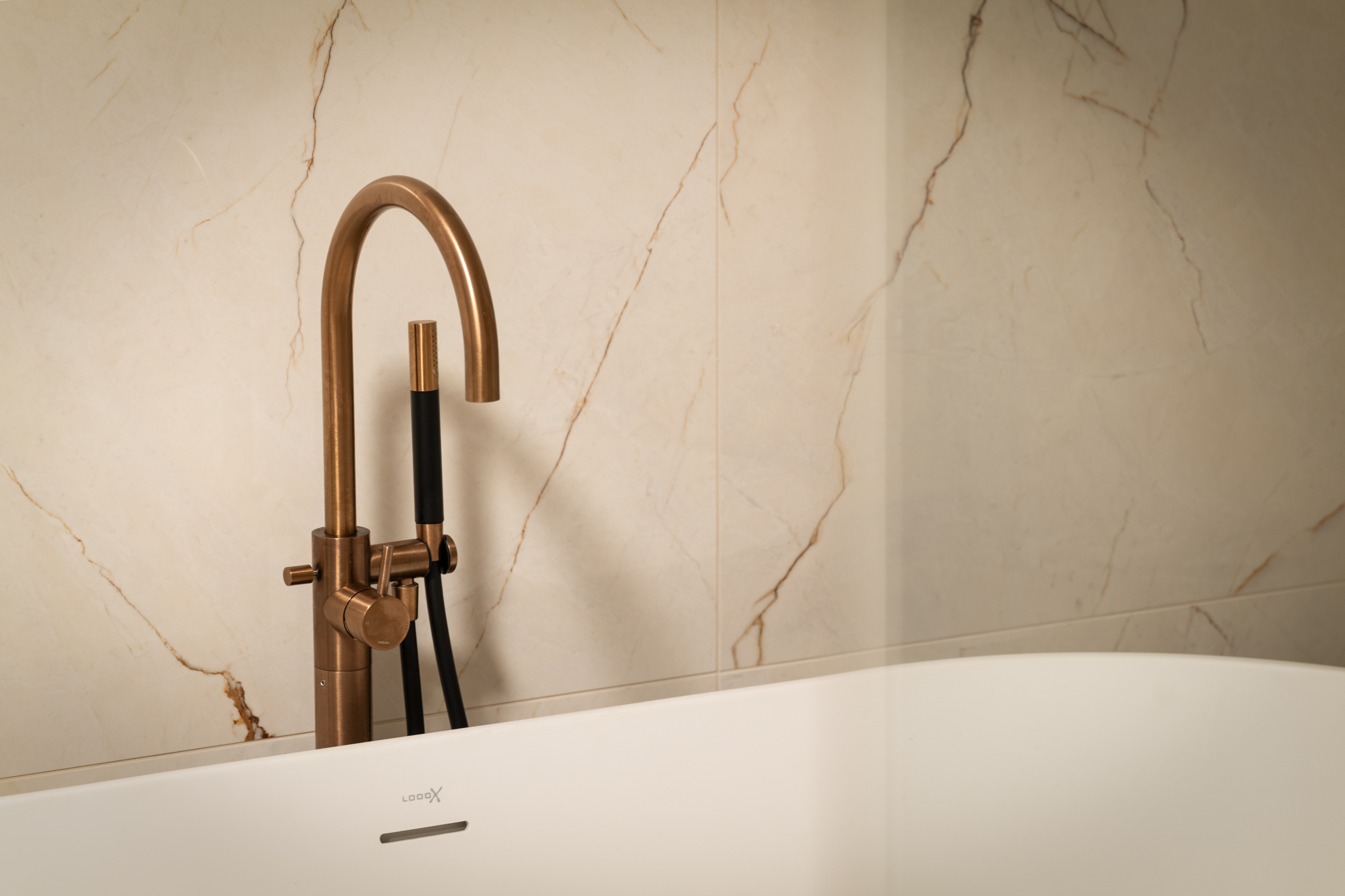 De enorme leefruimte van bijna 90 m² combineert een stijlvolle zithoek, eetkamer en moderne open keuken. Alles is strak gestuukt, voorzien van een prachtige PVC visgraatvloer, luxe raambekleding, maatwerkverlichting en hoogwaardig interieurdesign. De grote raampartijen zorgen voor een overvloed aan daglicht en een directe verbinding met de tuin.