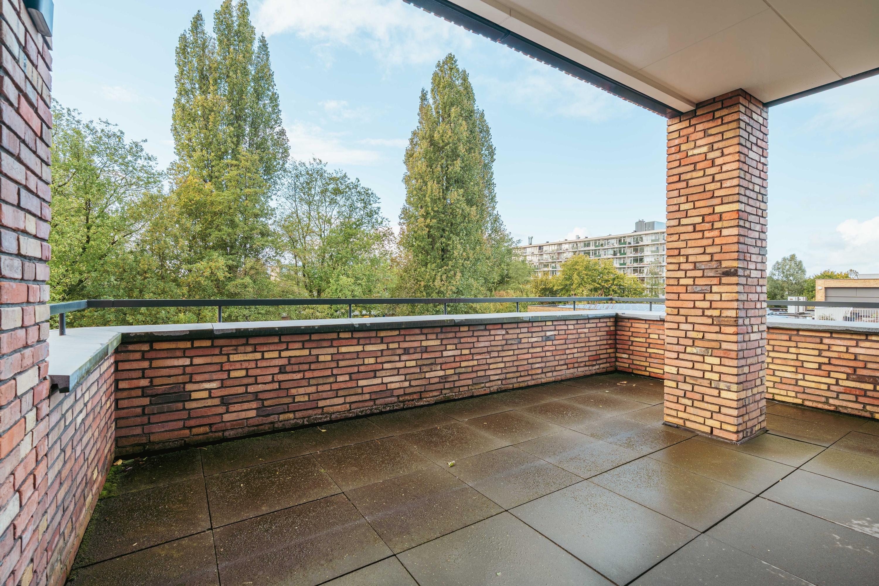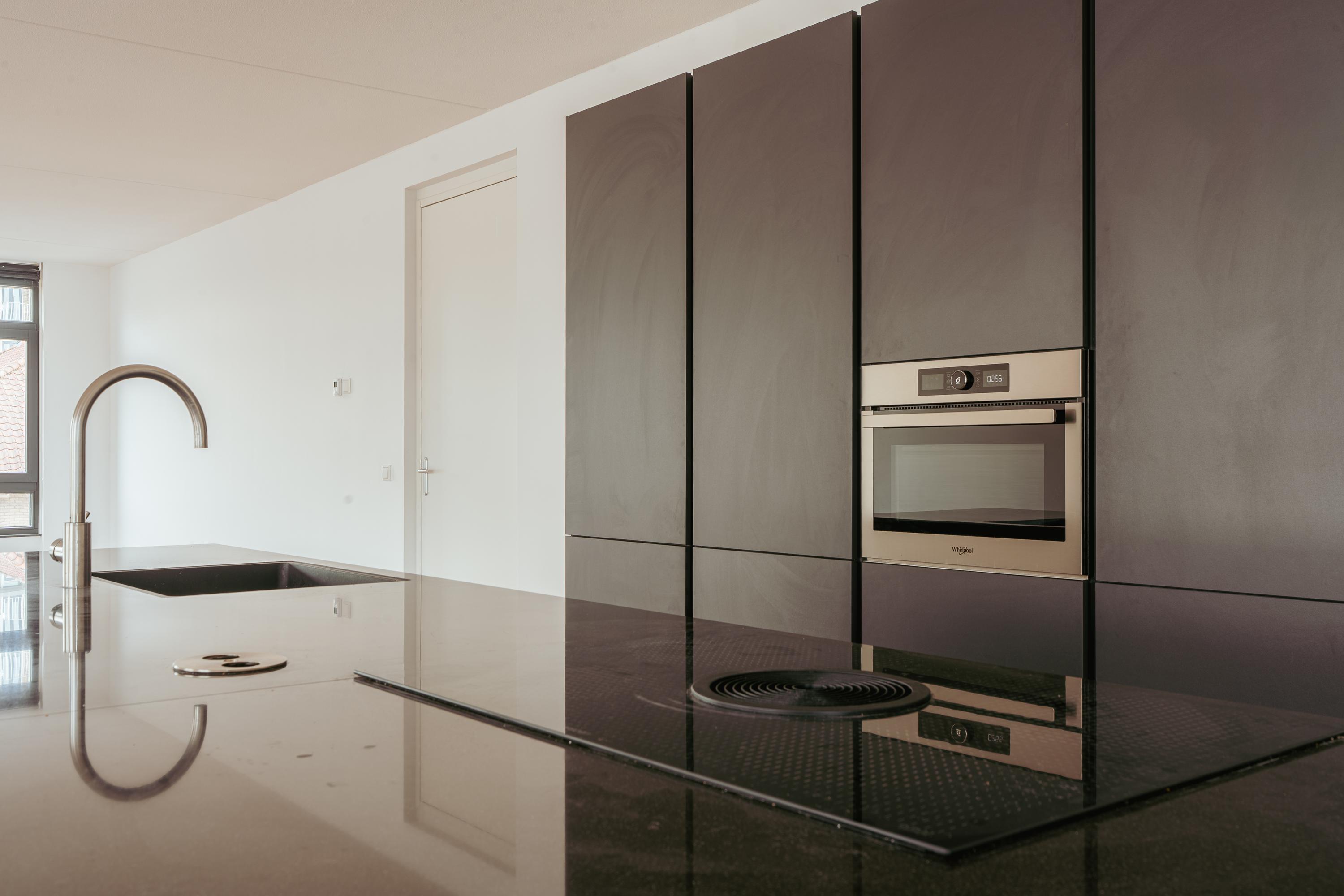 U bereikt het appartement comfortabel met de lift, waarna u via de verzorgde hal binnenstapt in een stijlvolle en lichte woning. De lange centrale gang leidt naar dubbele openslaande deuren die toegang geven tot de royale woonkamer. Hier springen de ruimte, het overvloedige licht en de verfijnde afwerking direct in het oog. De moderne keuken met kookeiland vormt het hart van de leefruimte en is uitgerust met op maat gemaakte houten kasten, een natuurstenen werkblad en diverse inbouwapparatuur met geïntegreerde afzuiging. Het bargedeelte nodigt uit tot ontspannen samenzijn en maakt de keuken tot een ideale plek om te koken én te genieten. Grote schuifdeuren geven toegang tot het zonnige hoekterras, waar u aan twee zijden geniet van een vrij uitzicht en een heerlijk buiten-binnengevoel creëert op warme dagen.