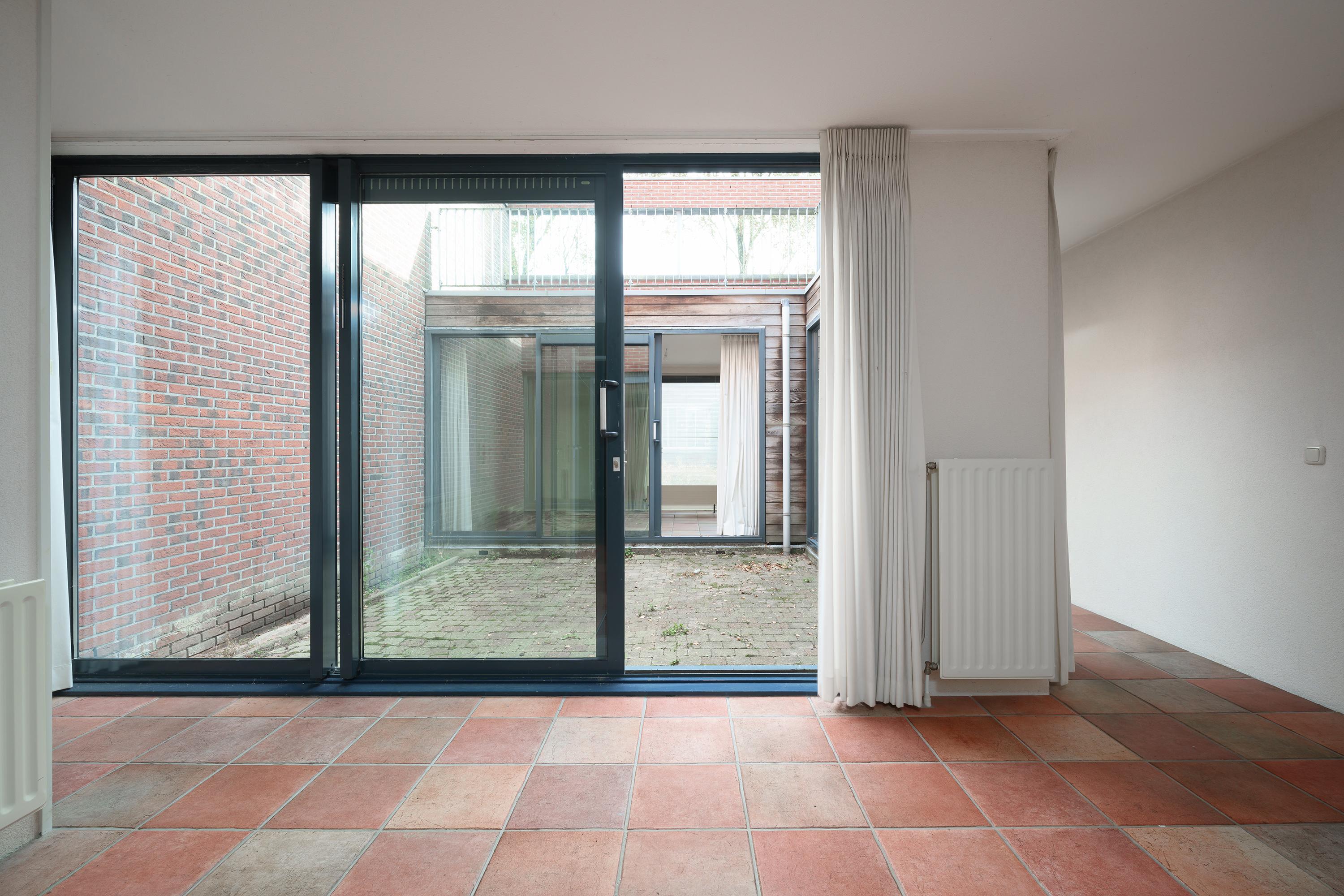 Rondom de patio bevinden zich verder twee ruime kamers die in open verbinding met elkaar staan. De kamer aan de achterzijde beschikt over een eigen entree! Ideaal voor als je atelier, praktijk of kantoor aan huis wenst, maar geen bezoekers ‘door’ je huis wil.