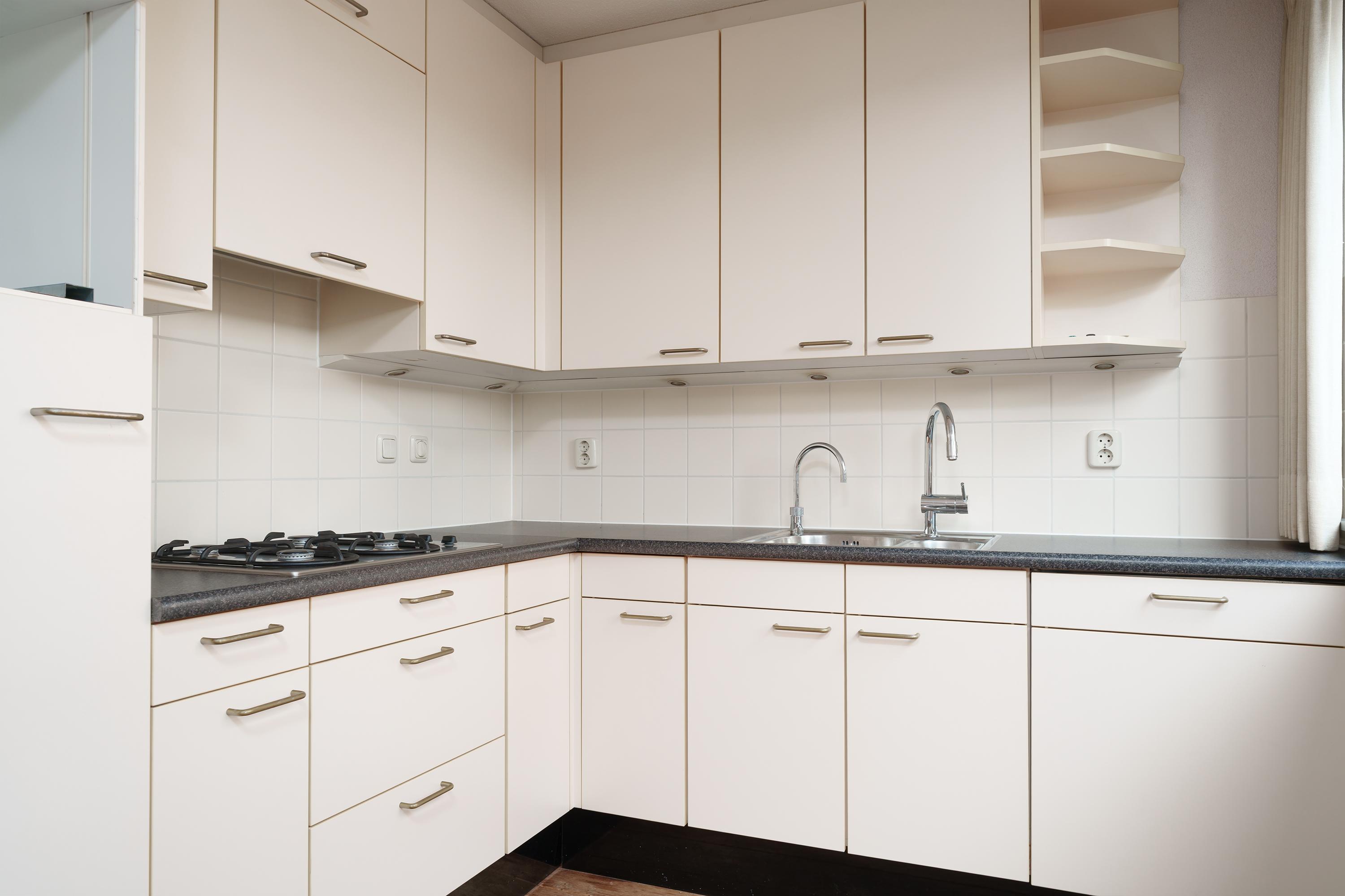Aan de keuken grenst het zéér ruime dakterras (circa 46 m²), ideaal voor zonnige dagen en lange avonden buiten.