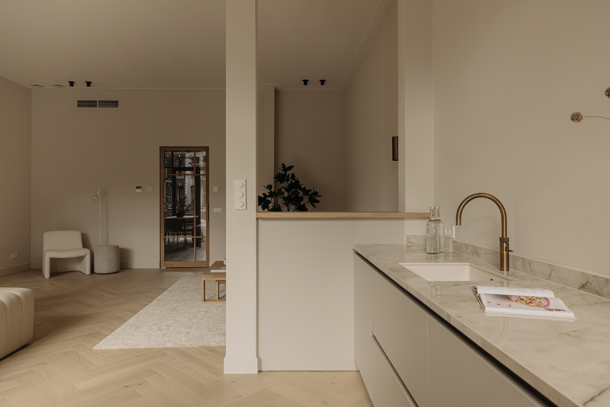 Luxe dubbel benedenhuis van ca. 182 m² met vier slaapkamers, twee badkamers, een balkon, een terras, interne berging en entree naar het appartement via zowel de voor als achterzijde. De appartementen zijn vormgegeven met zorgvuldig geselecteerde, hoogwaardige materialen die een gevoel van warmte en comfort creëren. Luxe visgraatvloeren, hoge plafonds, subtiele tinten in de keukens en badkamers, en een doordacht lichtplan zorgen voor een harmonieuze en uitnodigende ambiance. De keuken, met haar strakke lijnen en ruime opbergruimte, biedt een perfecte combinatie van stijl en praktische functionaliteit. Het gebouw is gelegen op eigen grond.