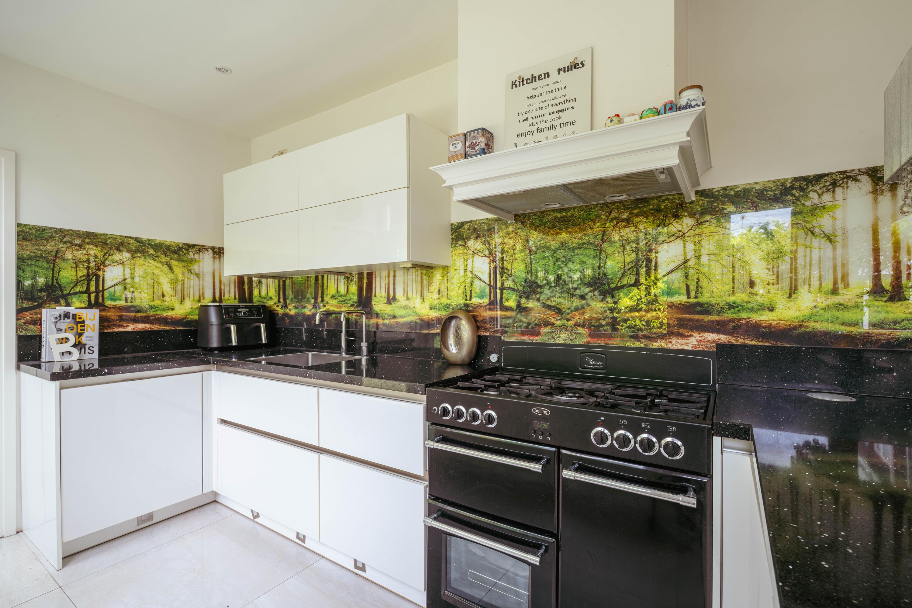 Via de fraai aangelegde voortuin bereikt u de entree van de woning. U komt binnen in het tochtportaal met garderoberuimte, dat leidt naar de centrale hal. Hier vindt u praktische bergruimte en een separaat toilet. Dubbele deuren geven toegang tot de royale en lichte living. Aan de voorzijde bevindt zich het zitgedeelte, sfeervol ingericht met een gashaard. Aan de achterzijde vindt u de eetkamer, die in directe verbinding staat met de halfopen keuken. De keuken is compleet uitgerust met een koelkast, oven, magnetron, gasfornuis, vaatwasser en spoelbak. Een gezellig bargedeelte en een knusse zithoek maken dit tot een fijne plek om te koken en samen te komen. Aangrenzend aan de keuken bevindt zich de bijkeuken, ideaal als extra bergruimte of wasruimte. Vanuit de keuken heeft u toegang tot de heerlijke en ruime achtertuin (ca. 51m²), gelegen op het oosten en voorzien van een berging.
