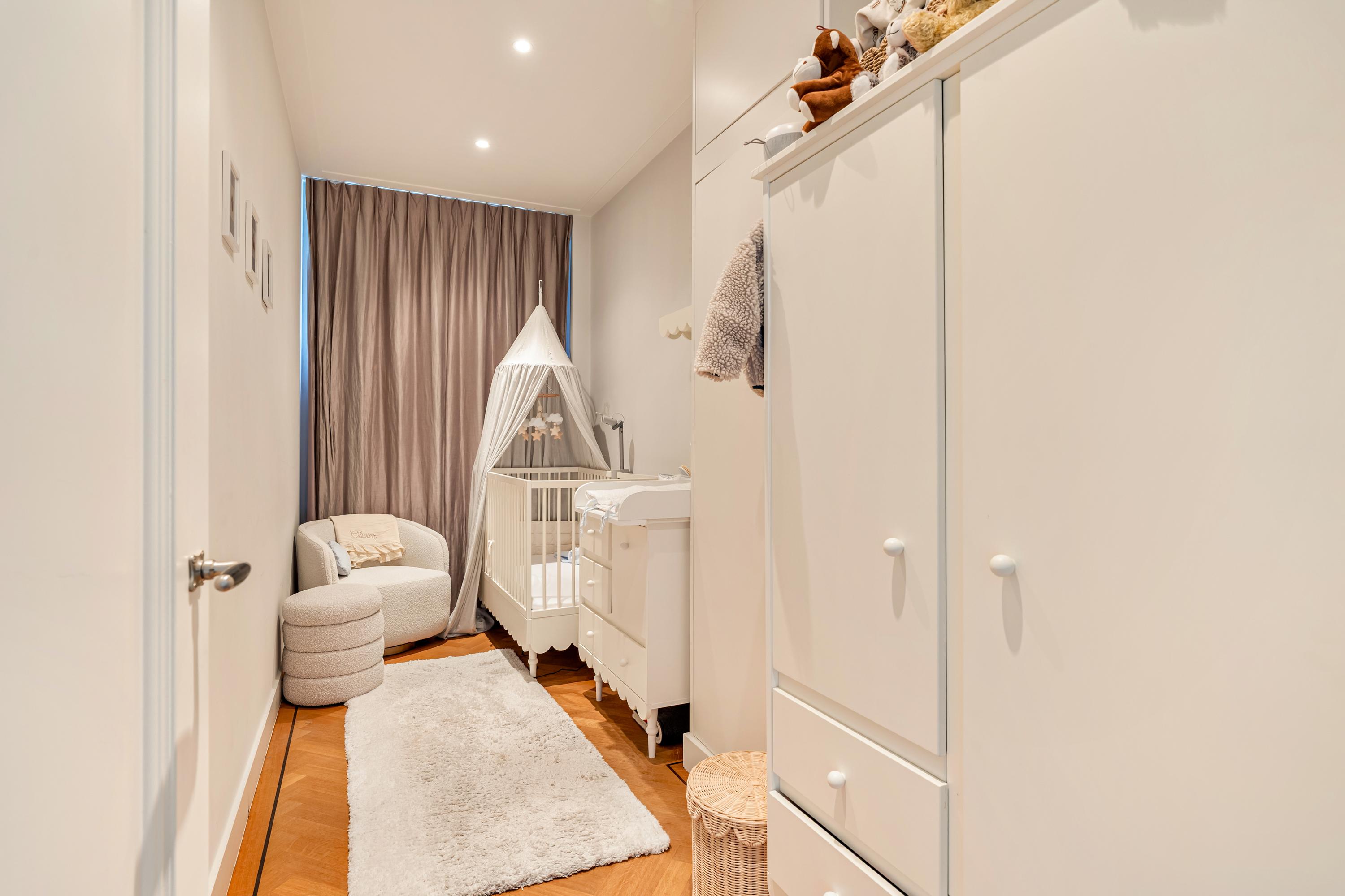Vanuit de hal zijn tevens de interne berging (thans in gebruik als walk-in closet), het separate toilet en de twee slaapkamers bereikbaar. De eerste slaapkamer is momenteel ingericht als kinderkamer, maar leent zich ook uitstekend als werk- of studeerkamer. De ruime master bedroom (ca. 20 m²) biedt plaats aan een groot bed en royale kastruimte.