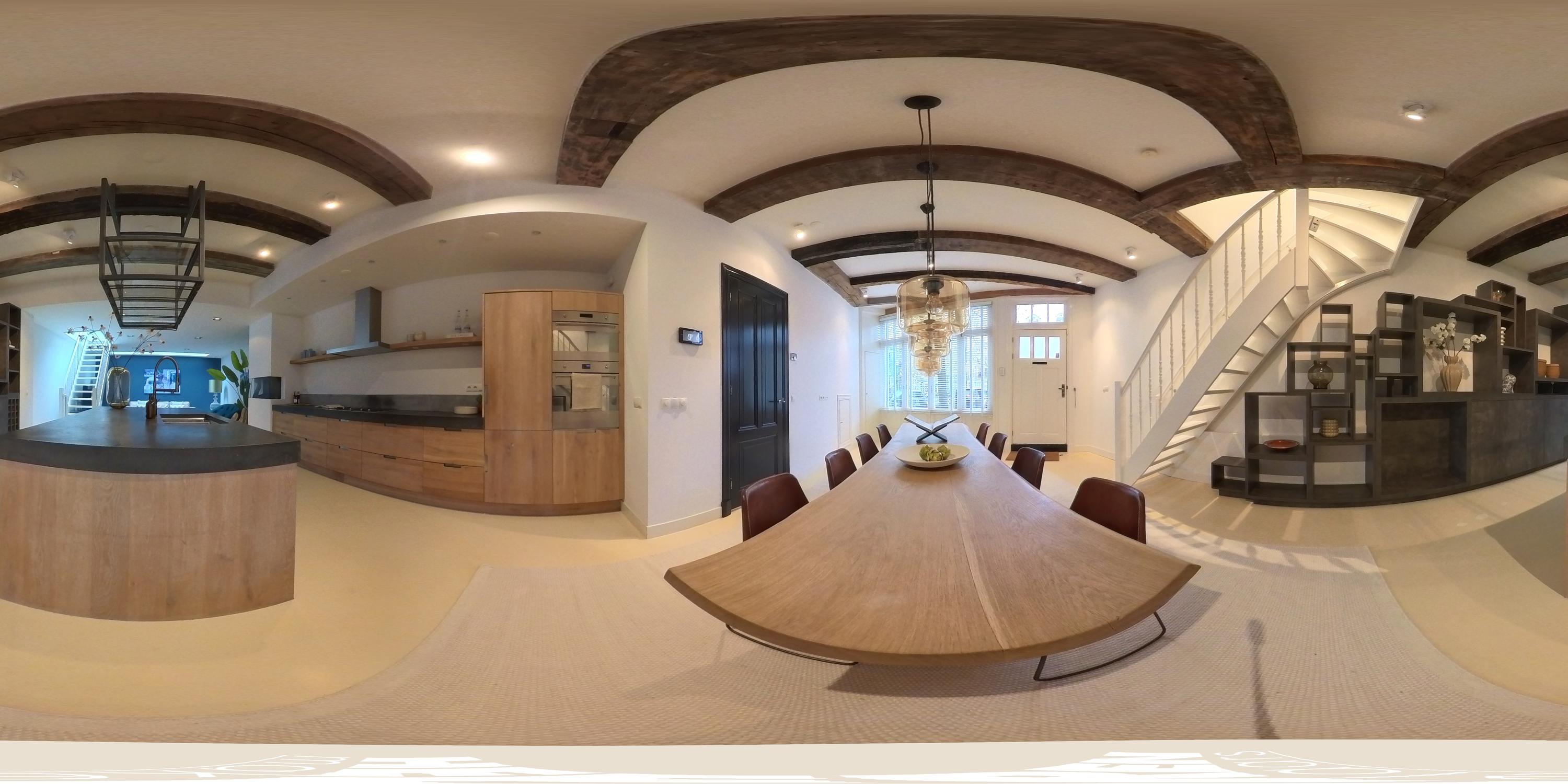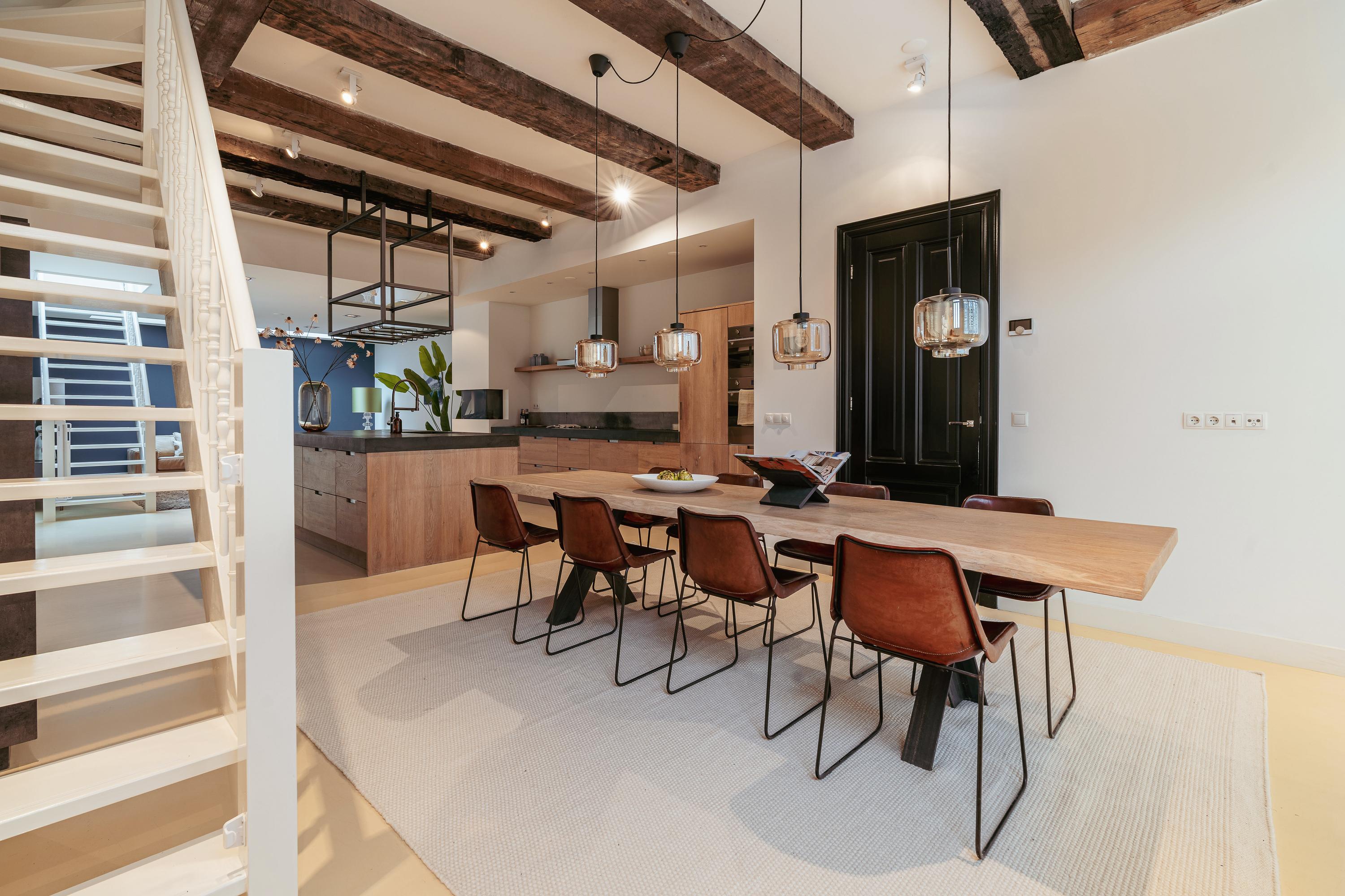 Via de eigen entree aan de Prinsengracht stapt u binnen in een bijzonder lichte en sfeervolle woonruimte waar authentieke details en modern comfort naadloos samenkomen. Direct bij binnenkomst vallen de hoge plafonds met zichtbare houten balken op, evenals de grote raampartijen die prachtig uitzicht bieden op de gracht.