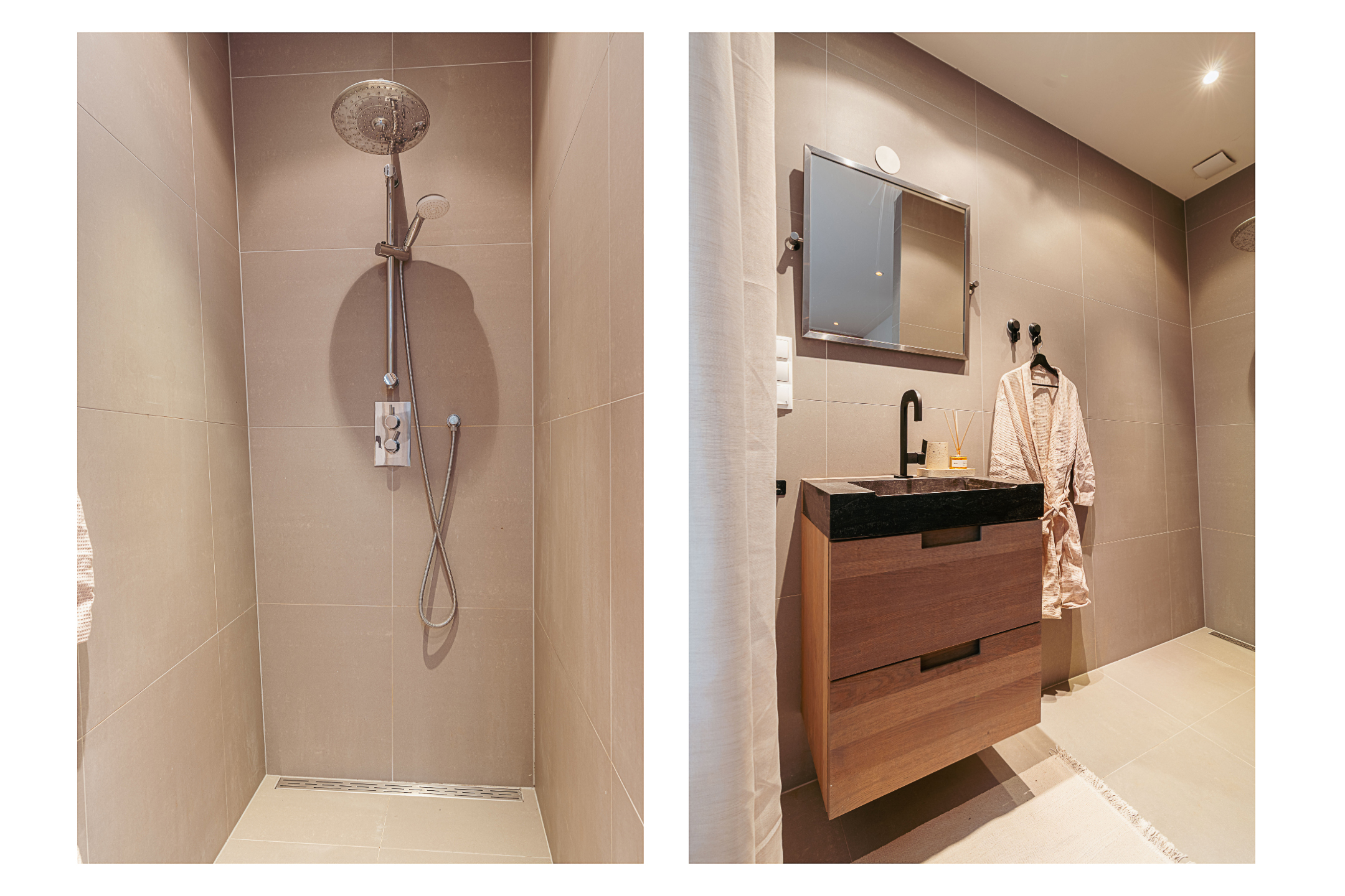 De tweede badkamer op deze verdieping is uitgerust met een ligbad met douche en een wastafelmeubel. Daarnaast is er een separaat toilet en een aparte ruimte voor de wasmachine en droger.