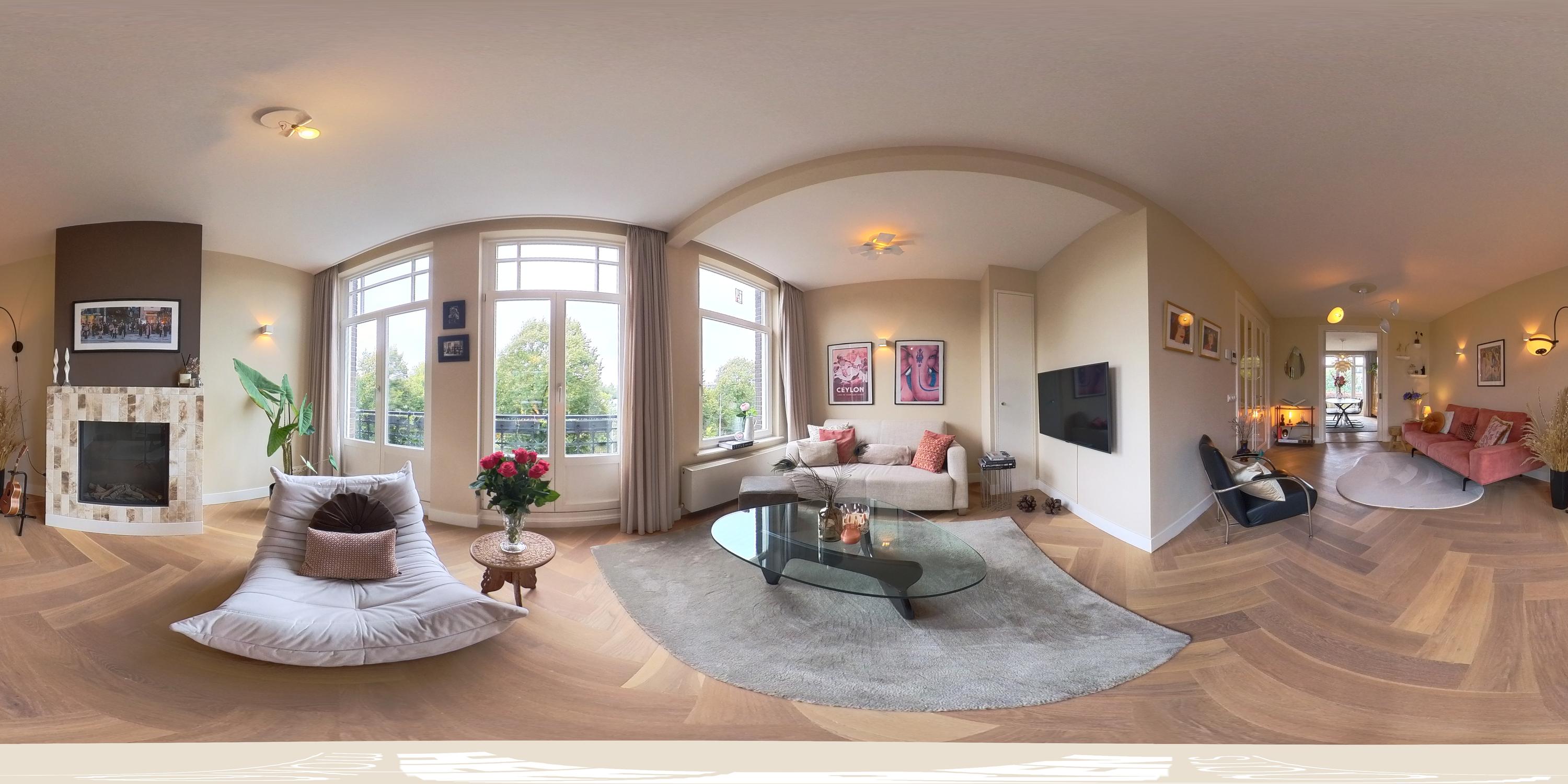 De derde verdieping vormt het hart van de woning en biedt een bijzonder lichte leefruimte met vrij uitzicht op Artis en het vele groen in de omgeving. Hier ervaart u een unieke beleving: met regelmaat hoort u verschillende diergeluiden zoals de zeeleeuwen, apen en in de avond zelfs de wolven, wat een hele unieke sfeer toevoegt aan het stadsleven.