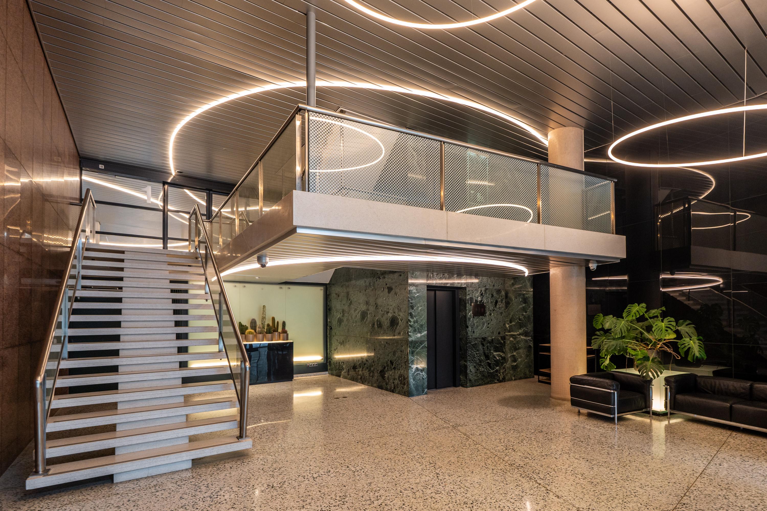 De woning is gelegen in het moderne appartementengebouw “Byzantium” op de achtste verdieping van dit complex. Het gebouw is ontworpen door de wereldberoemde architect Rem Koolhaas en heeft een moderne, luxueuze entree van natuursteen. De fraaie hal heeft een lift en een zeer verzorgd trappenhuis. Het complex heeft een goed beveiligingssysteem, waaronder een 24 uurs camerabewaking en een huismeester. Zowel de entree op de begane grond als de parkeergarage zijn bewaakt. Vanuit de parkeergarage heeft u direct toegang tot het trappenhuis en kunt u binnendoor de woning bereiken. Bovendien is de garage voorzien van een fietsenberging en wasstraat. Alsmede heeft de vereniging van eigenaren een gedeelde, fraai aangelegde en gemeubileerde, groene daktuin op de eerste verdieping.
