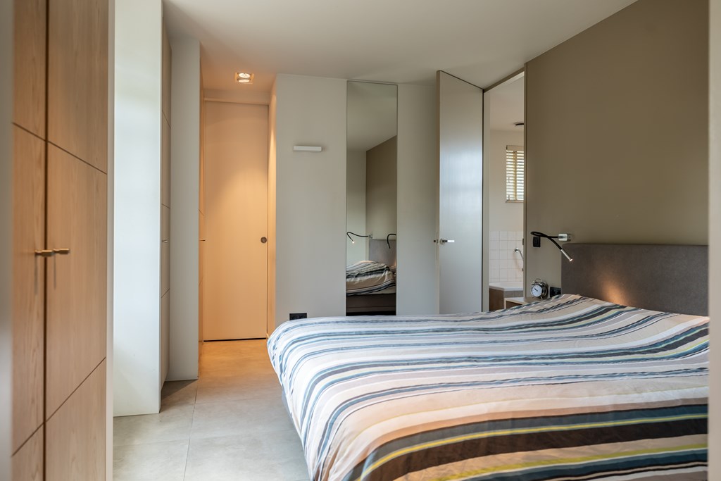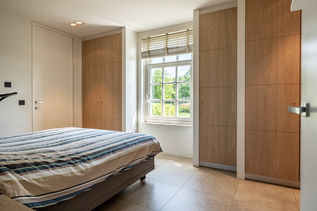 De eerste slaapkamer van het huis bevindt zich op de begane grond. Deze kamer is voorzien van een keramische tegelvloer met vloerverwarming, inbouwkasten, inbouwverlichting, badkamer en suite en heeft een fijn uitzicht op de tuin.