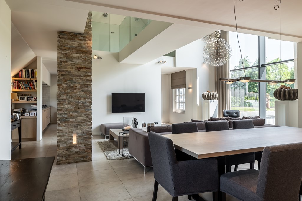 Over ieder detail in dit huis is nagedacht. De looplijn van de keuken naar de plek waar de eettafel staat loopt achter de gashaard langs. U loopt dus als het ware achter de zitkamer langs zodat u niemand hoeft te storen.