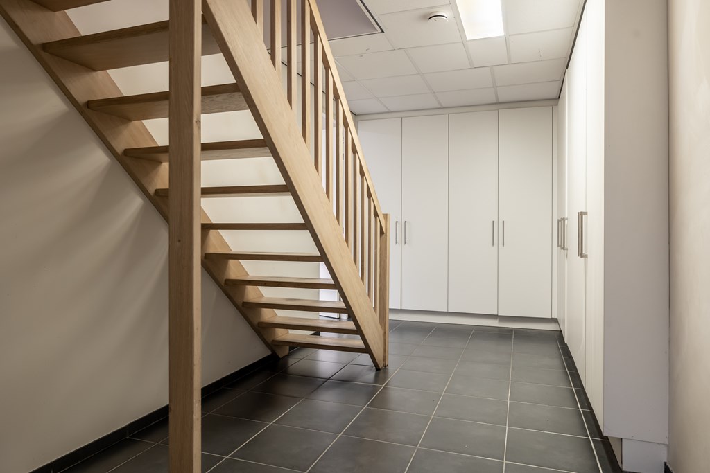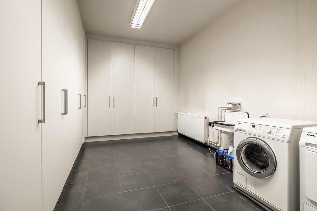 Verder vindt u in het souterrain een wijnkamer/berging, wasplaats en een technische ruimte. De wasplaats is voorzien van inbouwkasten en aansluitingen voor de wasmachine en droogkast.