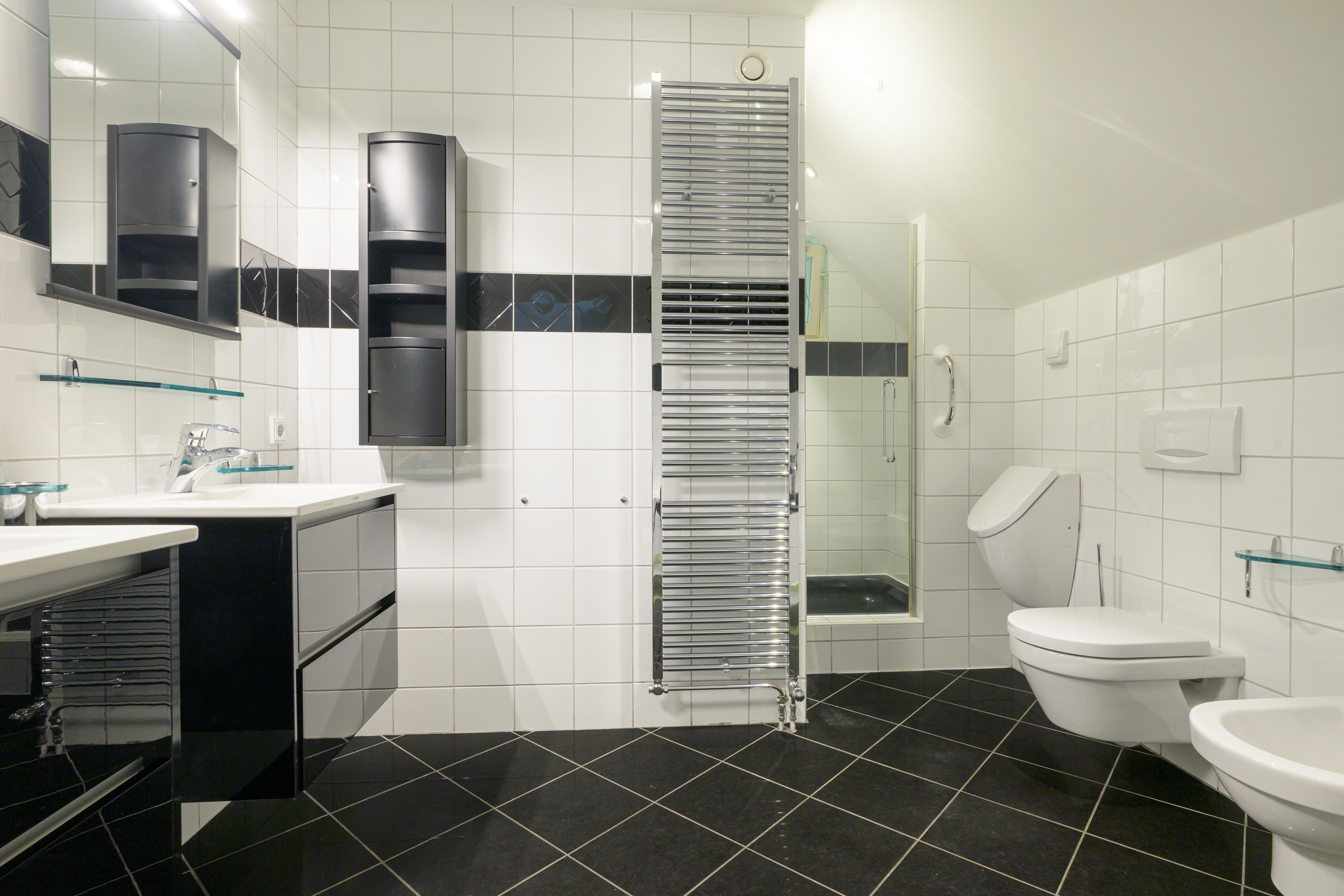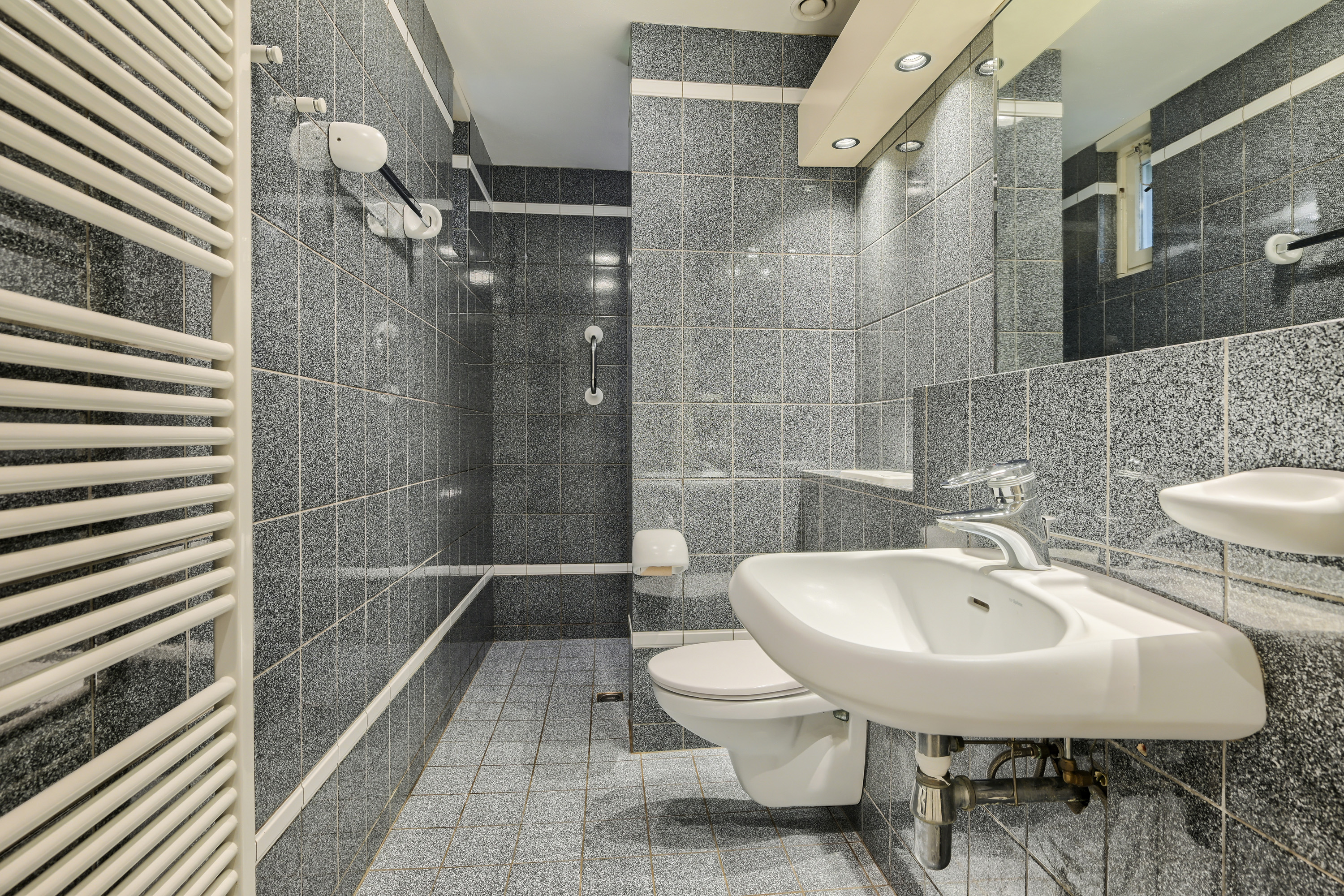 met inbouwreservoir en een designradiator.