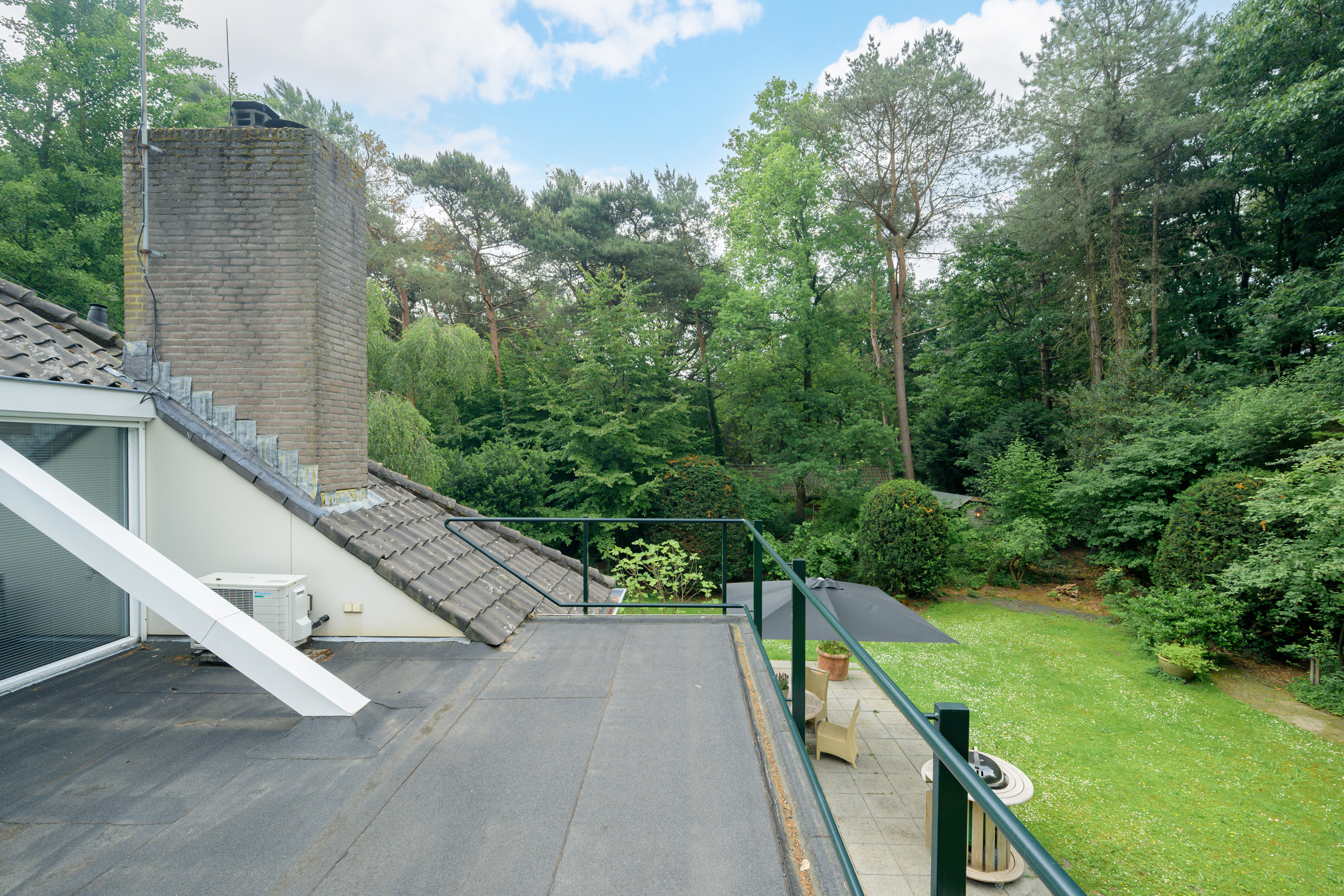 Een fantastische, lichte, multifunctionele ruimte. Deze kamer is te gebruiken als slaapkamer of, naar wens, te splitsen in twee aparte kamers. Ook leent zij zich uitstekend als living, werkkamer, atelier, etcetera. In deze kamer is aan de voorzijde een grote dakkapel aanwezig en aan de achterzijde een schuifpui, waardoor men een prachtig uitzicht geniet op de omliggende tuin en bossen. De schuifpui geeft toegang tot een riant platdak, dit biedt de mogelijkheid tot het creëren van een groot dakterras met fantastsich zicht op de tuin .