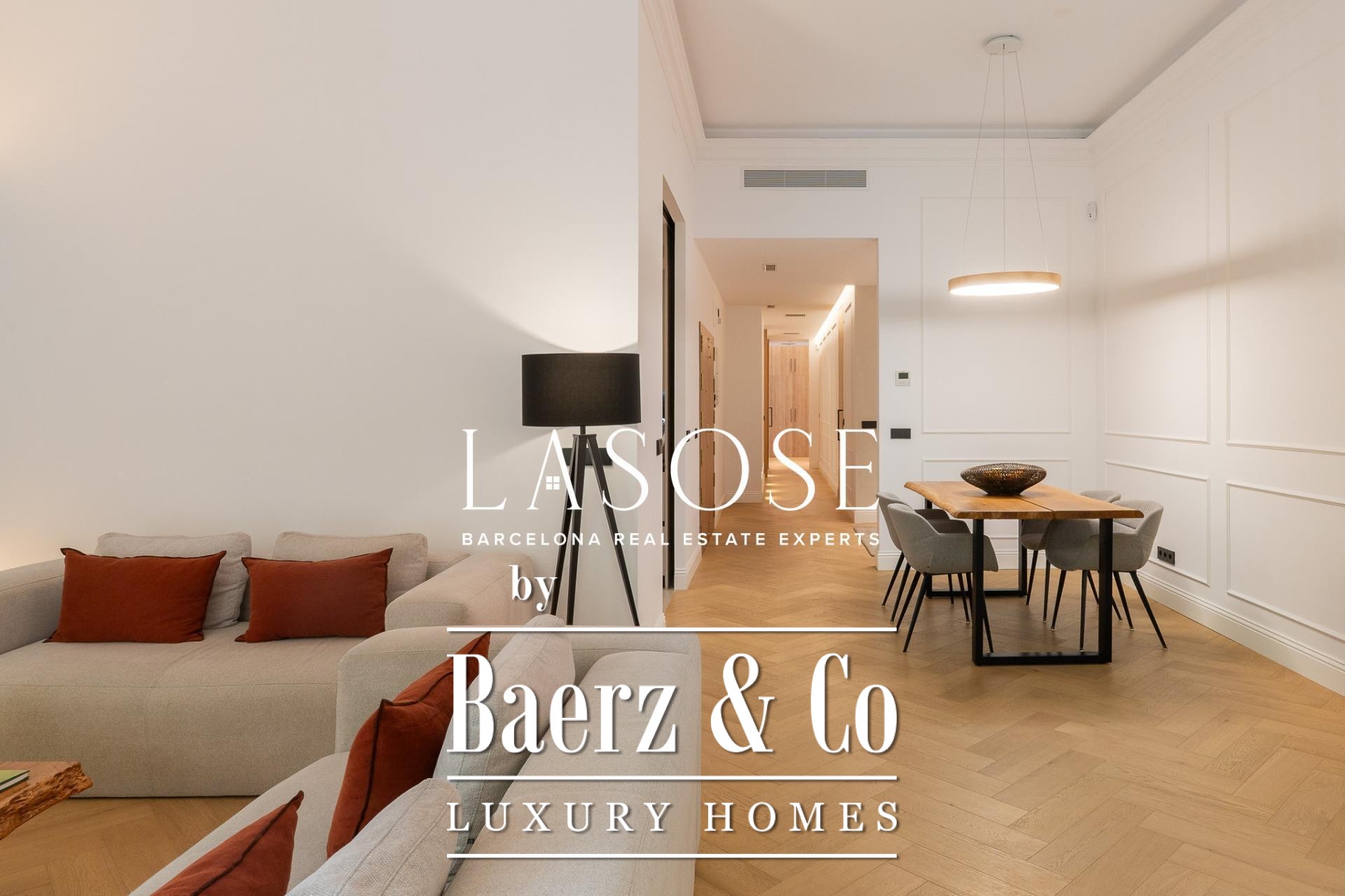 De indeling wordt gekenmerkt door een royale, zelfstandige woon- en eetkamer met hoge plafonds, drie slaapkamers—waaronder een verfijnde en suite, een tweepersoonskamer en een eenpersoonskamer—en twee complete badkamers. De volledig uitgeruste keuken is vormgegeven met een hedendaags ontwerp en eersteklas materialen, waardoor moderniteit en traditie naadloos samenkomen. Het balkon van circa 4,61 vierkante meter biedt veel licht, stadszicht en een directe verbinding met de sfeer van de Carrer de Casp.