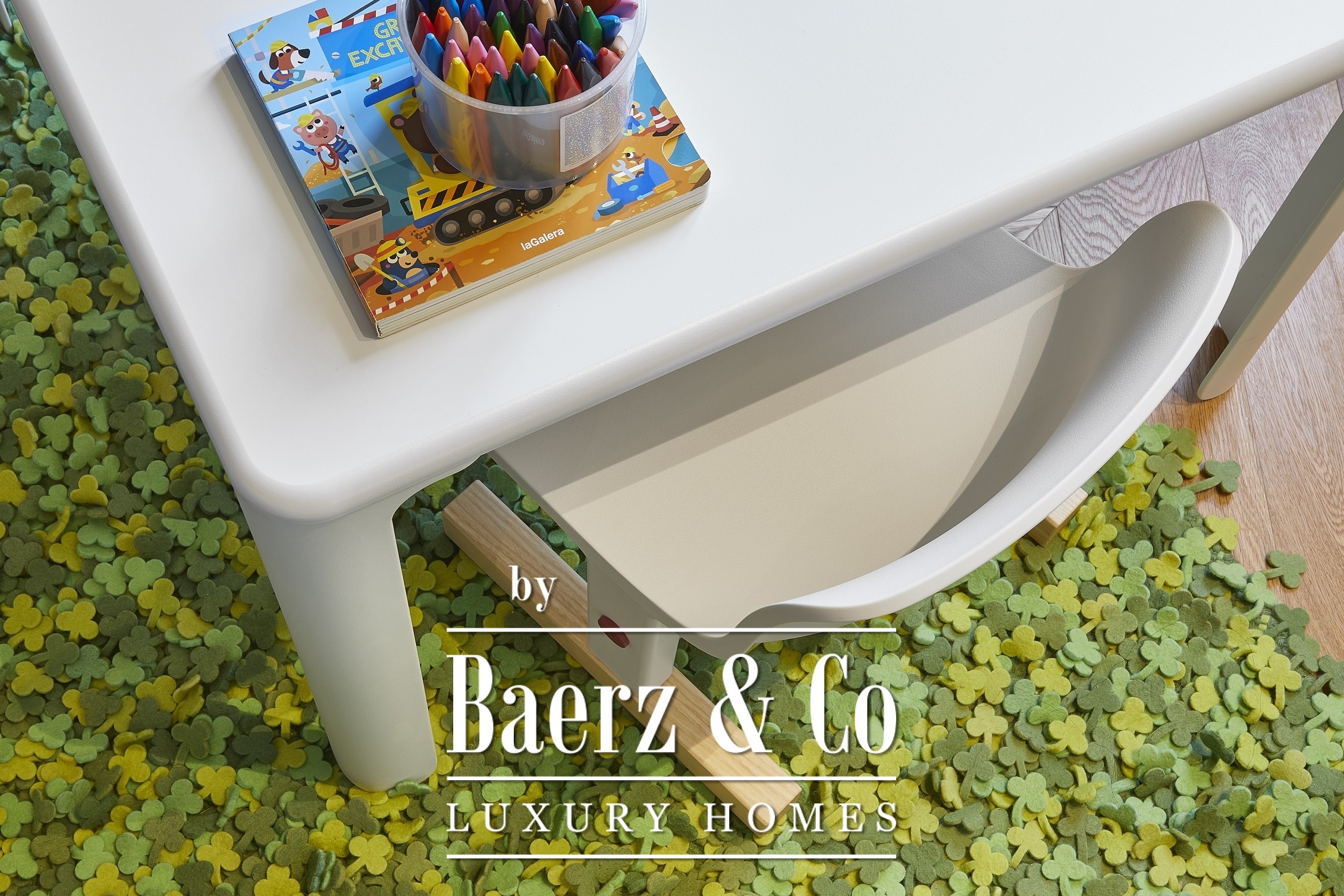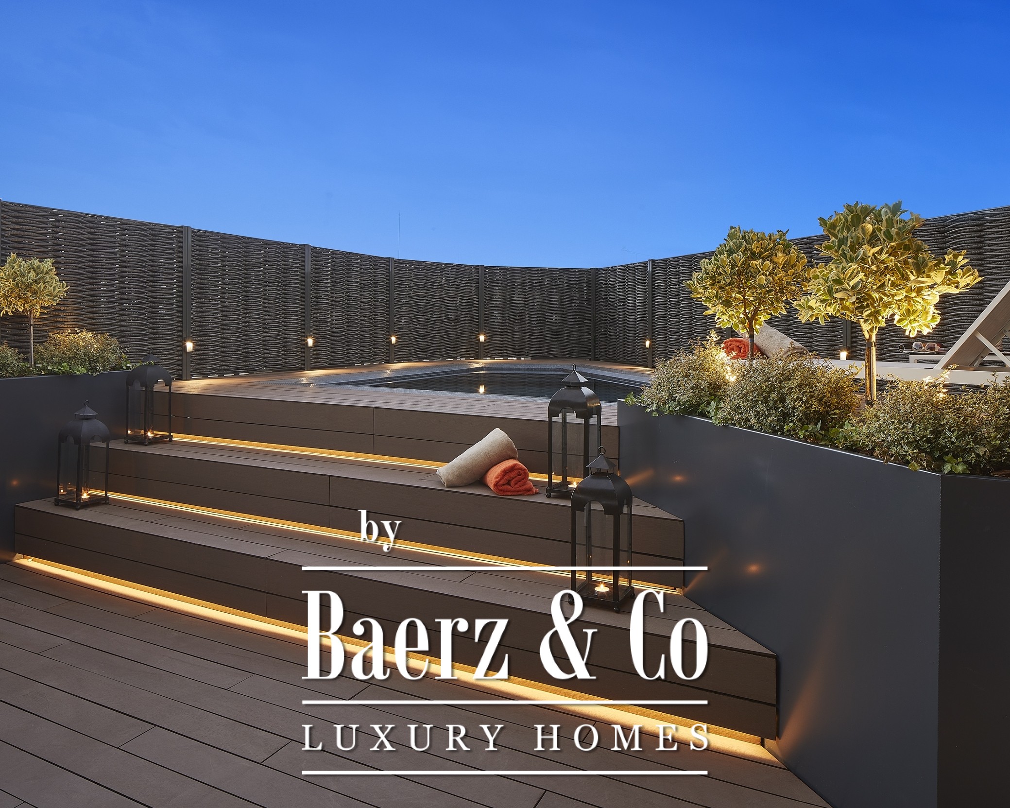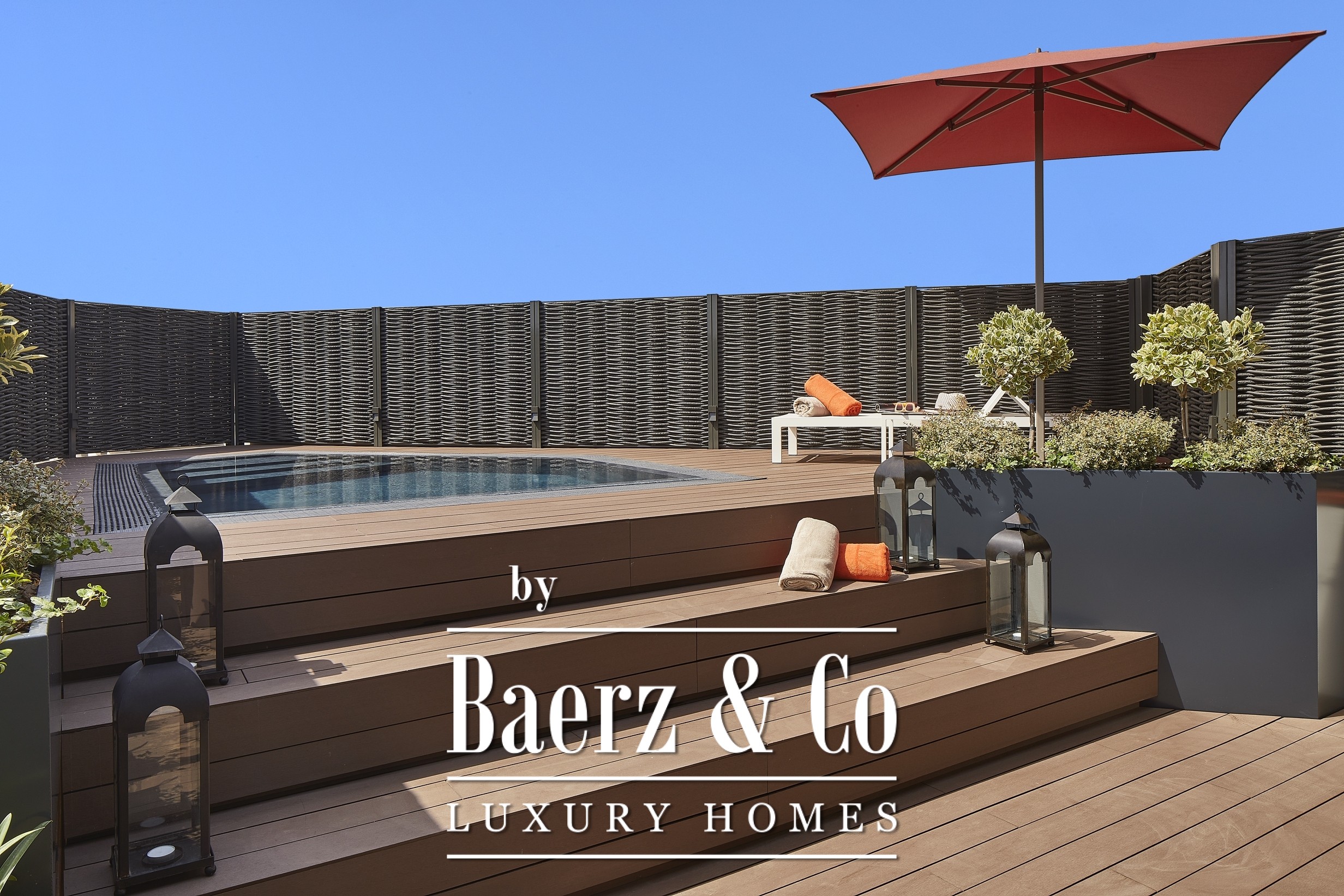 Dit privéterras, optimaal gelegen voor zonlicht gedurende het hele jaar, beschikt over een buitenkeuken, een al fresco eetgedeelte, intieme loungeplekken en een privézwembad—allemaal ontworpen om te genieten van het mediterrane klimaat van Barcelona. De slaapvertrekken omvatten drie dubbele slaapkamers met en suite badkamers, elk voorzien van ingebouwde kasten en uitzicht naar buiten. De mastersuite biedt een serene toevluchtsoord en is uitgerust met een badkamer bekleed met marmer, een ruim bad, een aparte douche, een kleedruimte en een licht privébalkon.