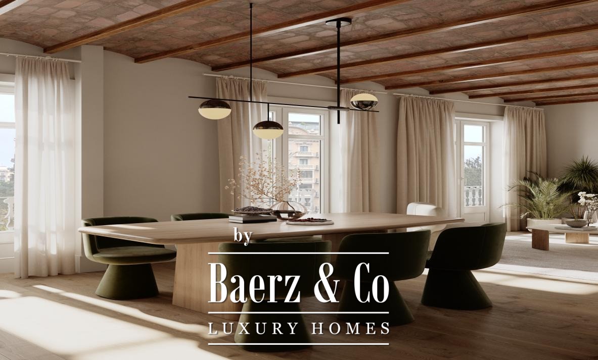 Twee dubbele slaapkamers, waaronder een master suite, en twee volledige badkamers tonen de zorgvuldige aandacht voor detail en comfort. De toegang via de lift draagt bij aan het gevoel van rust en privacy dat deze bijzondere woning kenmerkt. Dit luxe appartement in Eixample Esquerra, Barcelona, staat voor verfijnde, discrete stedelijke elegantie voor wie historie en klasse weet te waarderen.