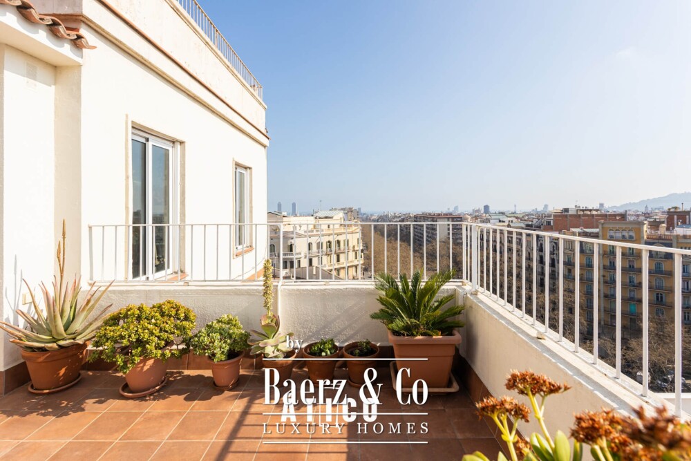 Penthouse appartement Barcelona biedt een verfijnd stedelijk toevluchtsoord, gelegen op slechts enkele stappen van Passeig de Sant Joan in een van de meest gewilde adressen van de stad. Deze centraal gelegen woning van 65 m² beschikt over twee slaapkamers en een terras van 10 m², waarmee u geniet van een privé-uitzicht over de stad, inclusief een bevoorrecht zicht op Tibidabo, de zee en de Sagrada Familia.