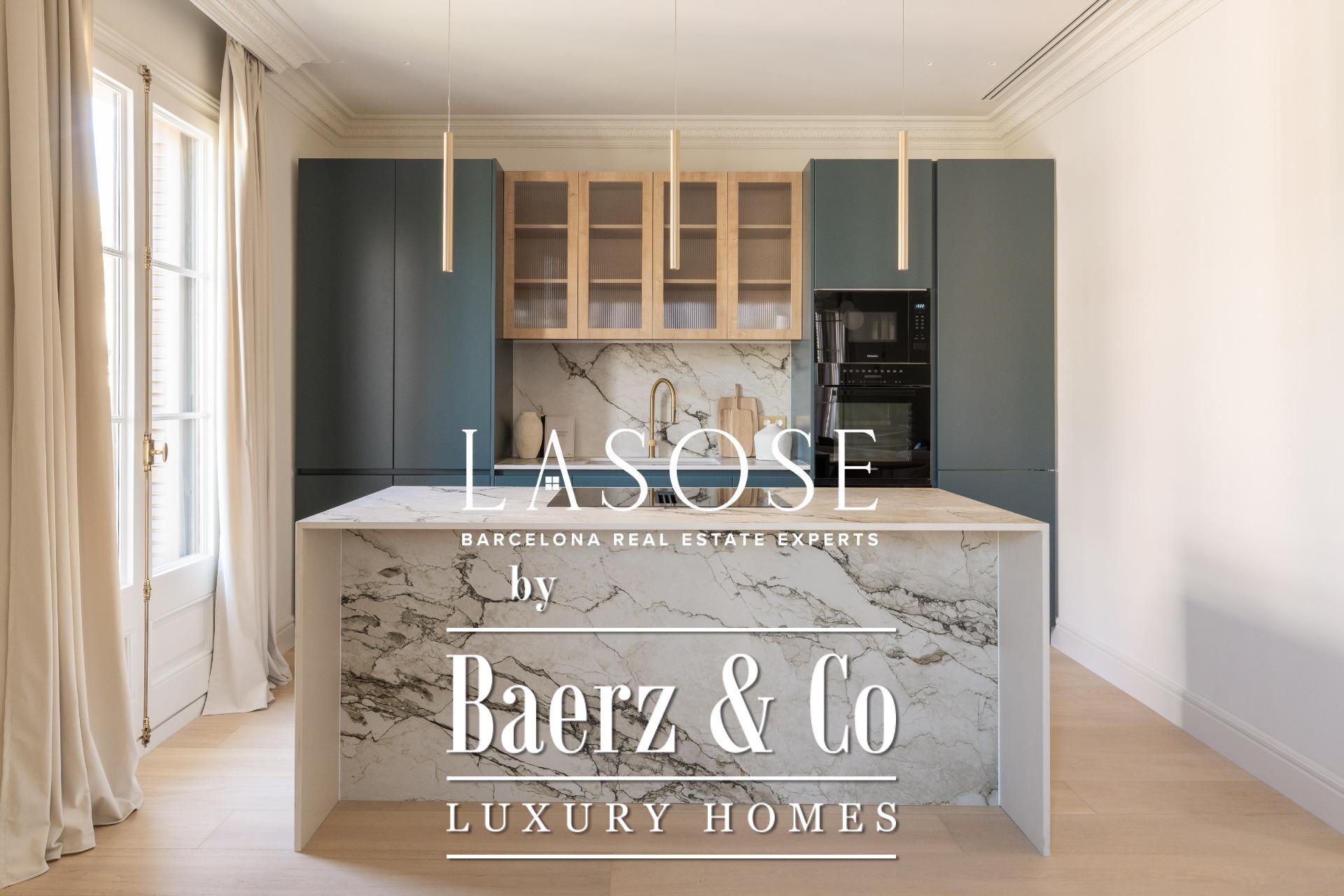 Penthouse Barcelona Quadrat d'Or bevindt zich op het felbegeerde kruispunt van Calle Girona en Gran Via de les Corts Catalanes en biedt 201 m² aan verfijnde leefruimte met een terras van 20 m². Deze woning combineert historie met hedendaags design, op slechts enkele passen van de Passeig de Gràcia en Plaça Catalunya. Omringd door hotels, theaters, restaurants, scholen en exclusieve winkels en volledig ontsloten door het openbaar vervoer, bevindt u zich hier in het hart van Barcelona’s iconische Quadrat d'Or.