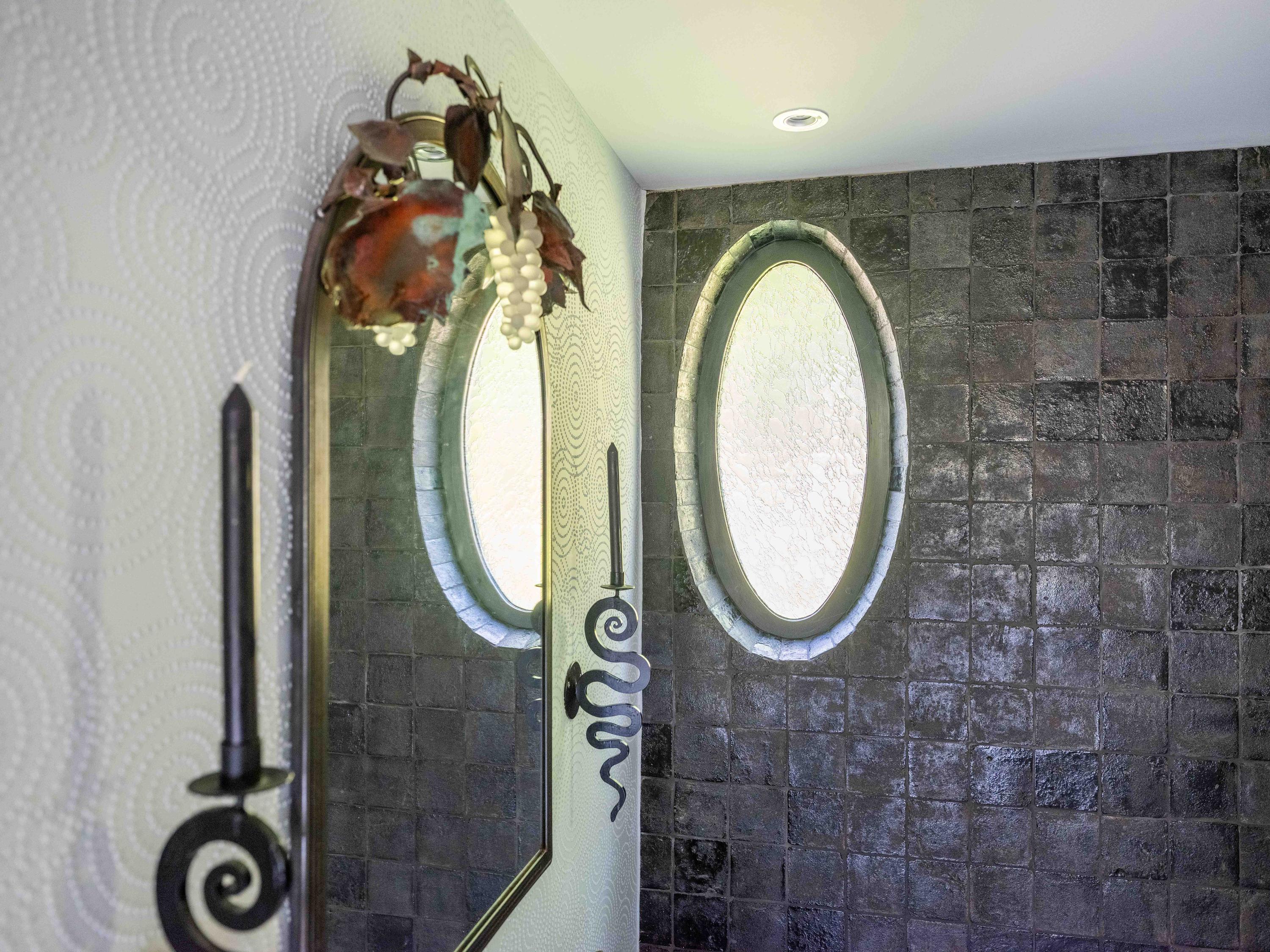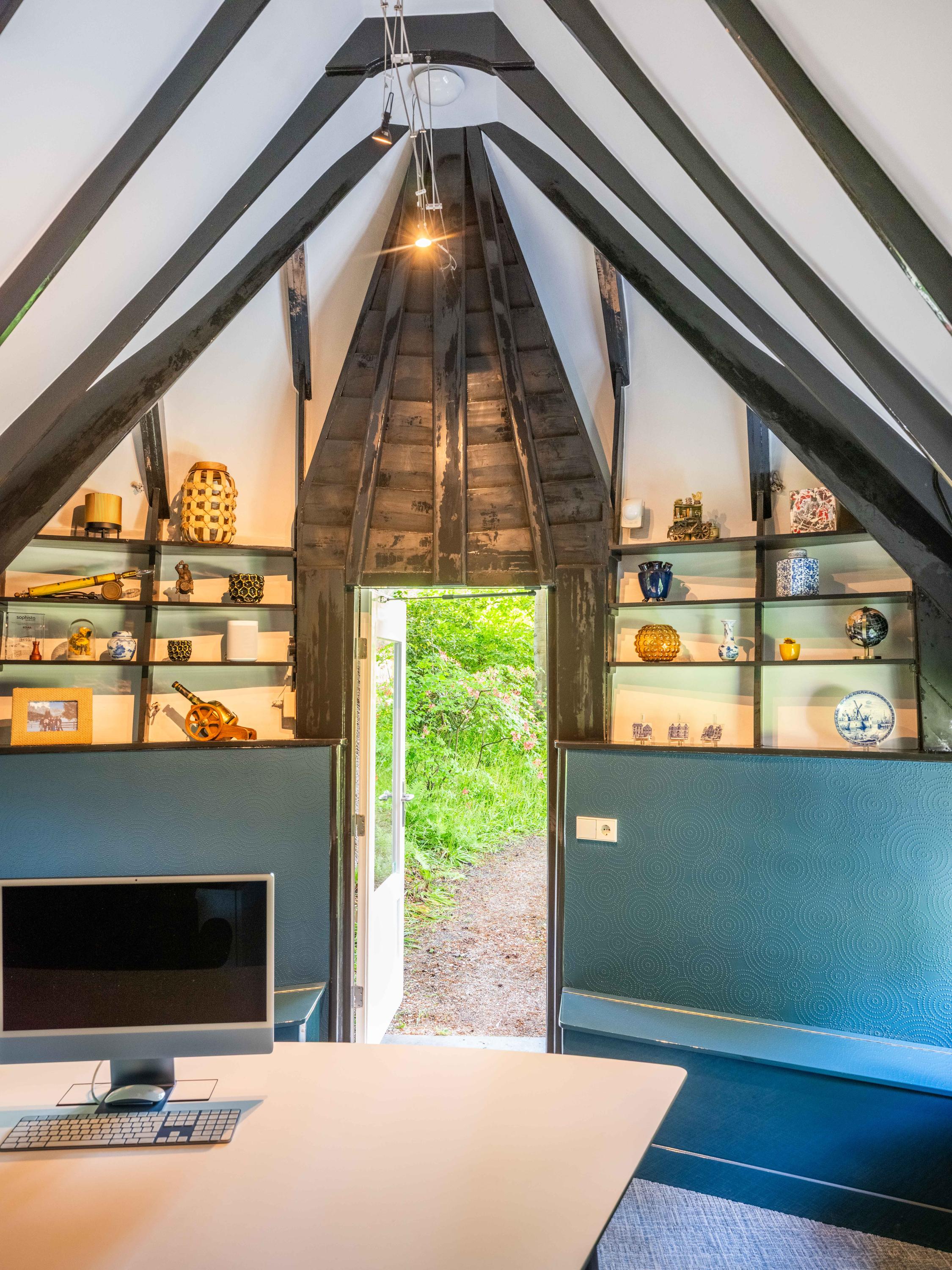 Als kers op de taart, hebben we nog het "ingangs"huisje, vooraan gelegen op het perceel, tussen de ligusterhagen. Dit karakteristieke gebouwtje met rieten kap roept het beeld op van "sloep aan het lijntje van de Ark". Een heerlijke werkplek met ook hier weer authentieke Amsterdamse School elementen.