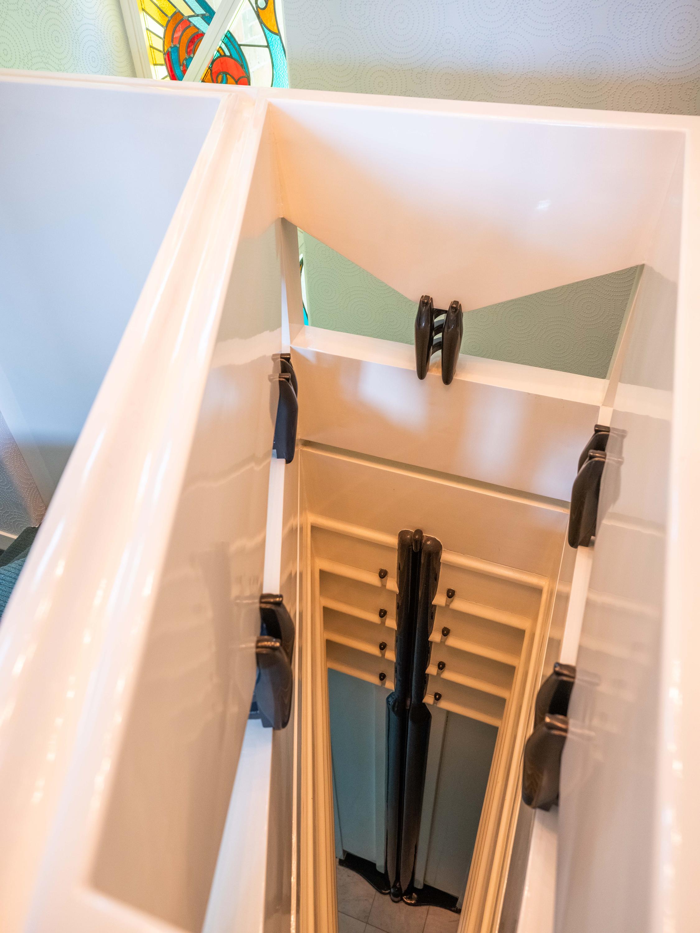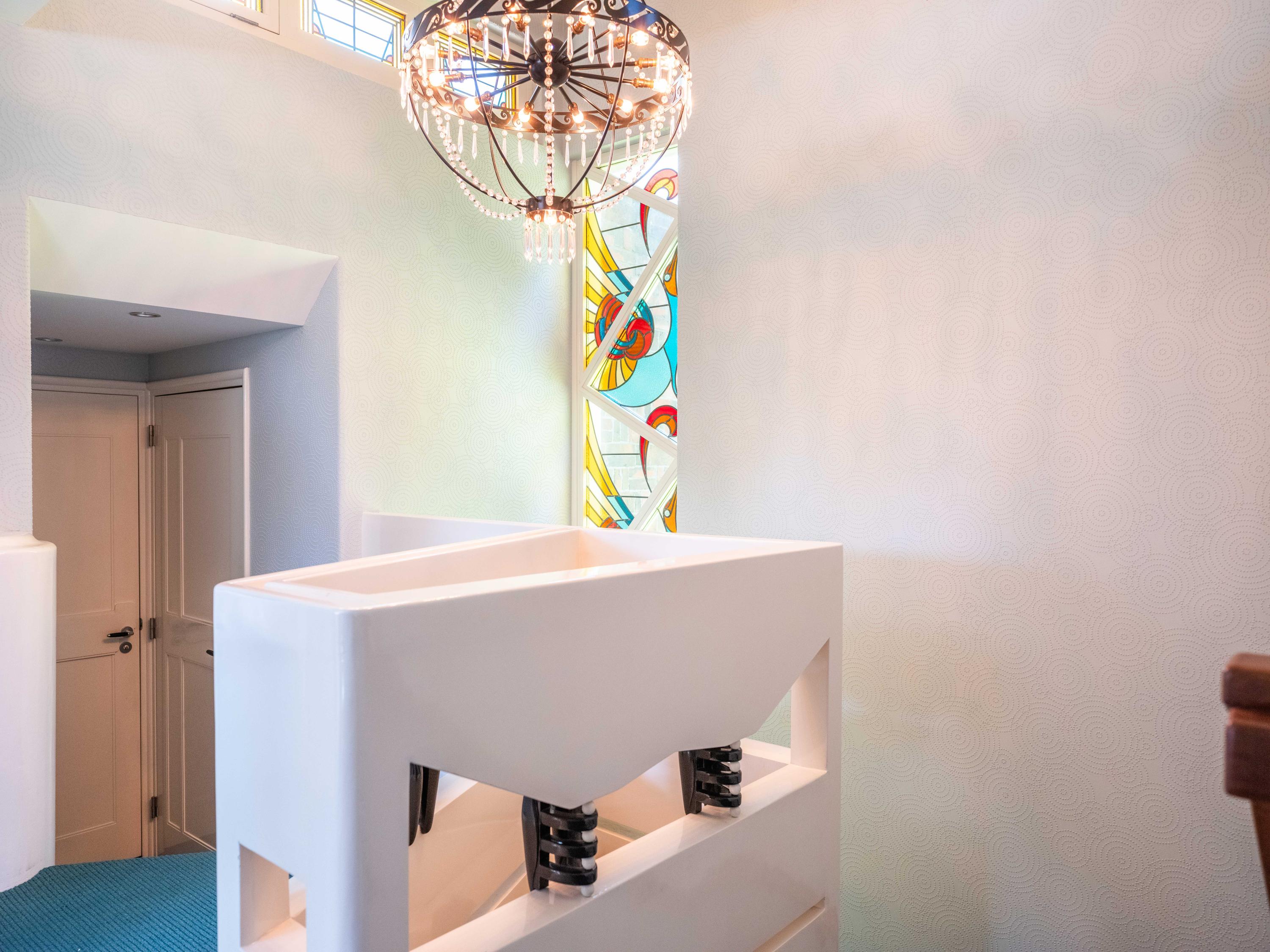 Tevens aan de overloop is nog de tweede kleinere badkamer met wastafel en douche te vinden.