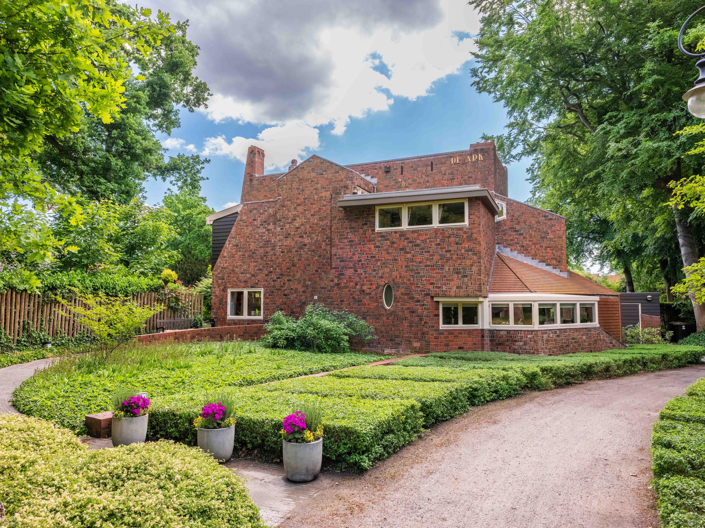 De villa en het bijhuisje zijn beiden ontworpen door architect J.F. Staal rond 1917 en voorzien van prachtig complex metselwerk, rode bakstenen, zwart gepotdekselde delen. Binnen vallen gelijk diverse ornamenten, vormen, kleur- en materiaalgebruik op met o.a. Belgisch hardsteen, hout en prachtig glas-in-lood.