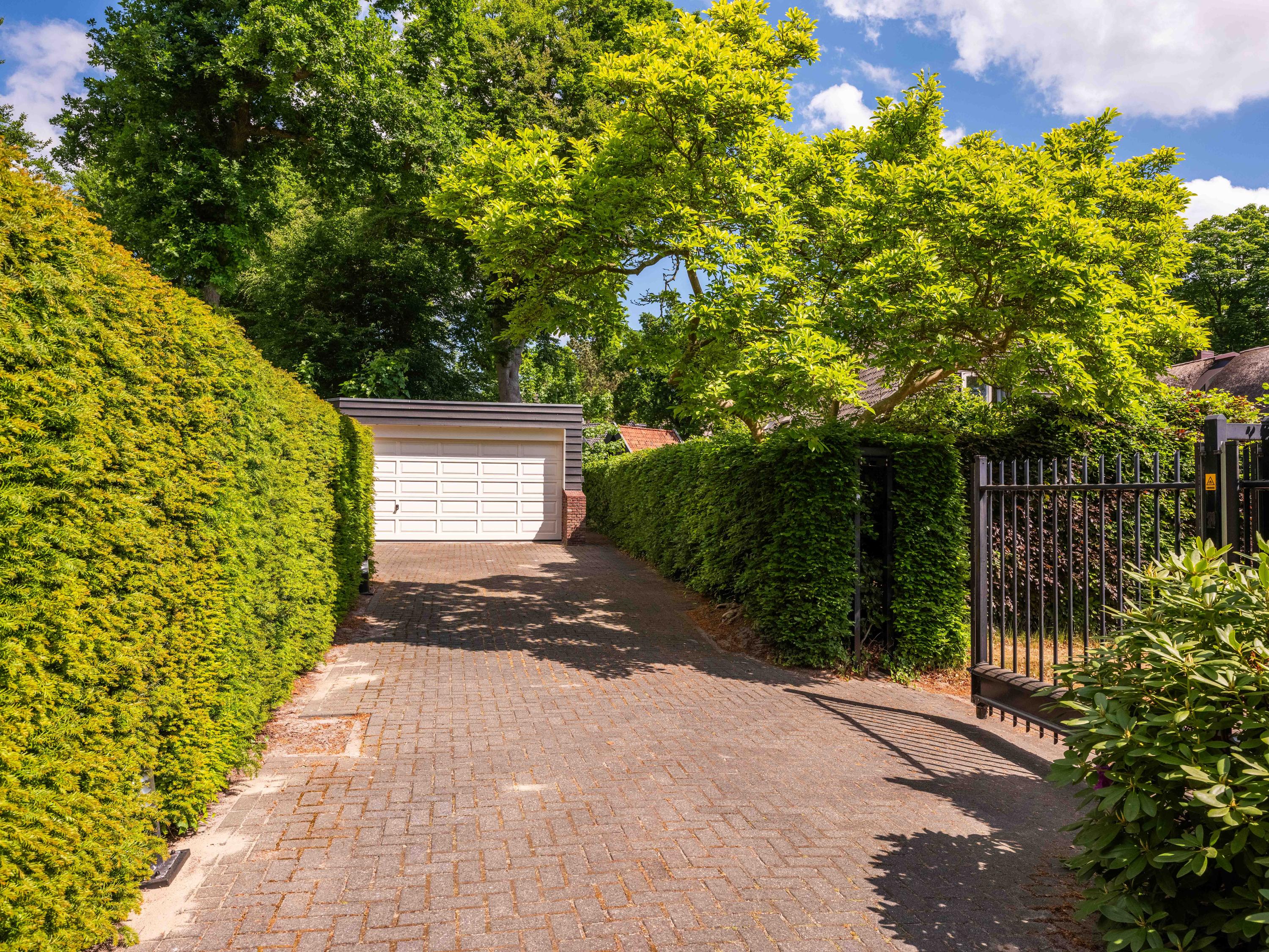 Bij het entree van het park vanaf de Studler van Surcklaan wordt u verwelkomt door het "toegangshuisje" nu in gebruik als kantoor en behorende bij de villa die wij hier te koop aanbieden! De villa en het bijhuisje zijn gelegen in een prachtige parkachtige tuin met aan de de achterzijde een geheel omsloten en privacyvolle achtertuin.