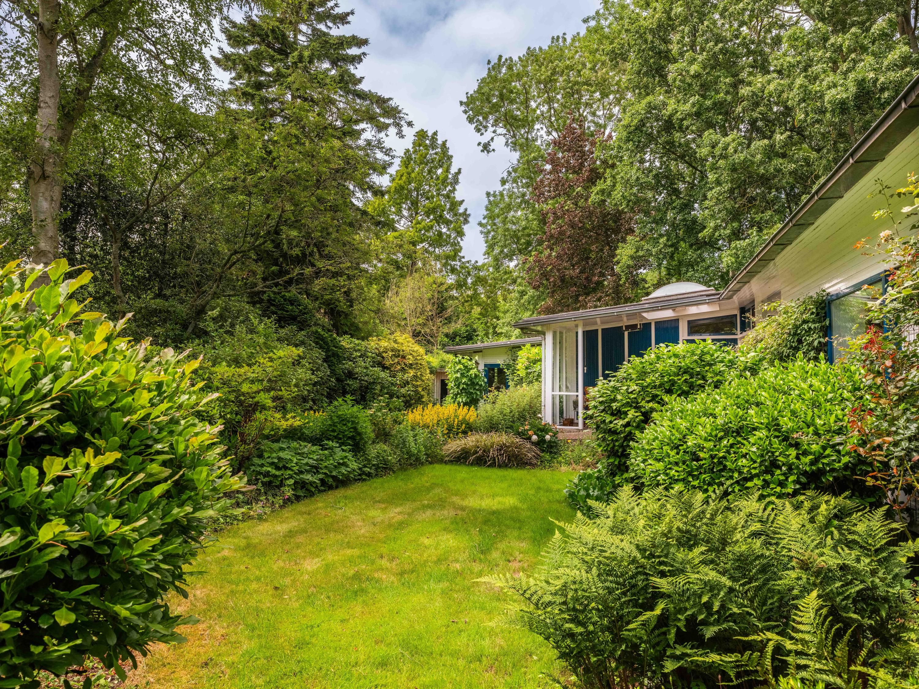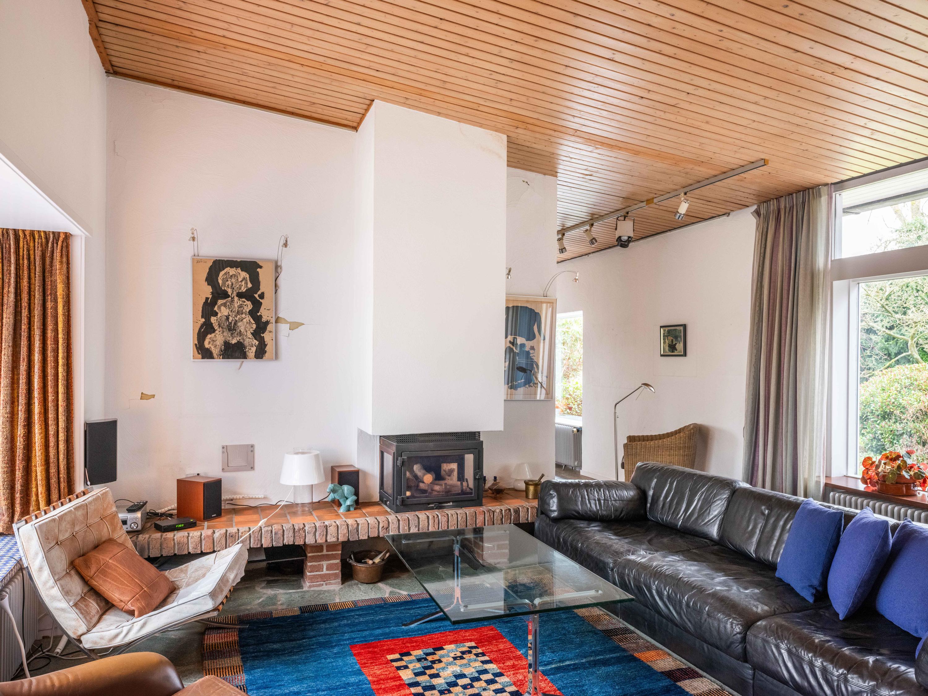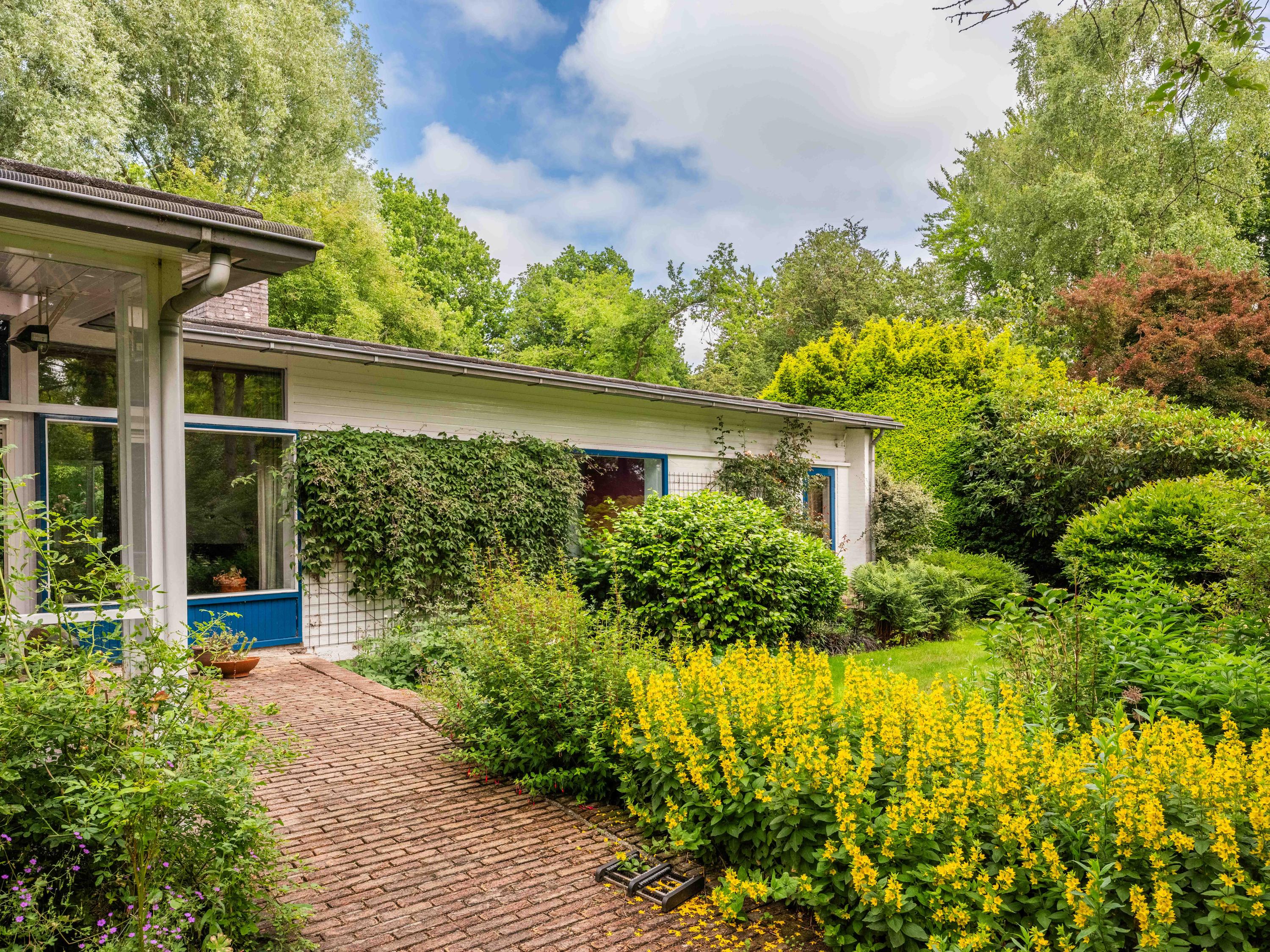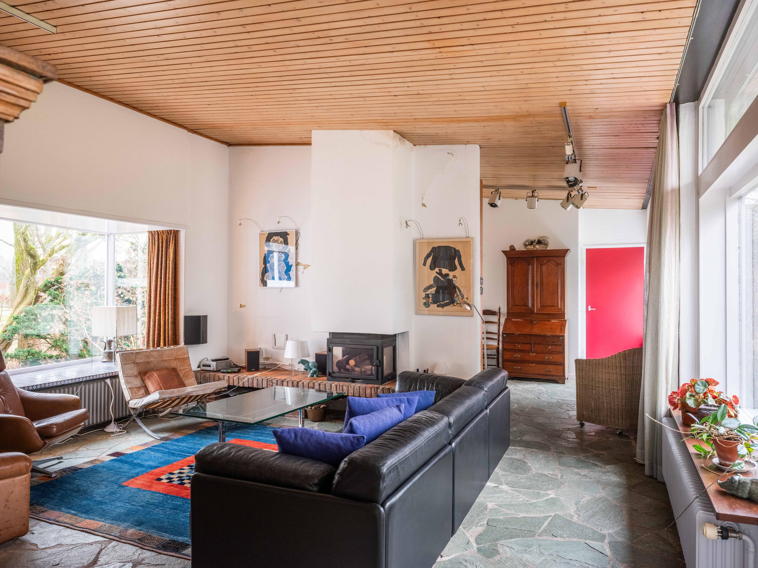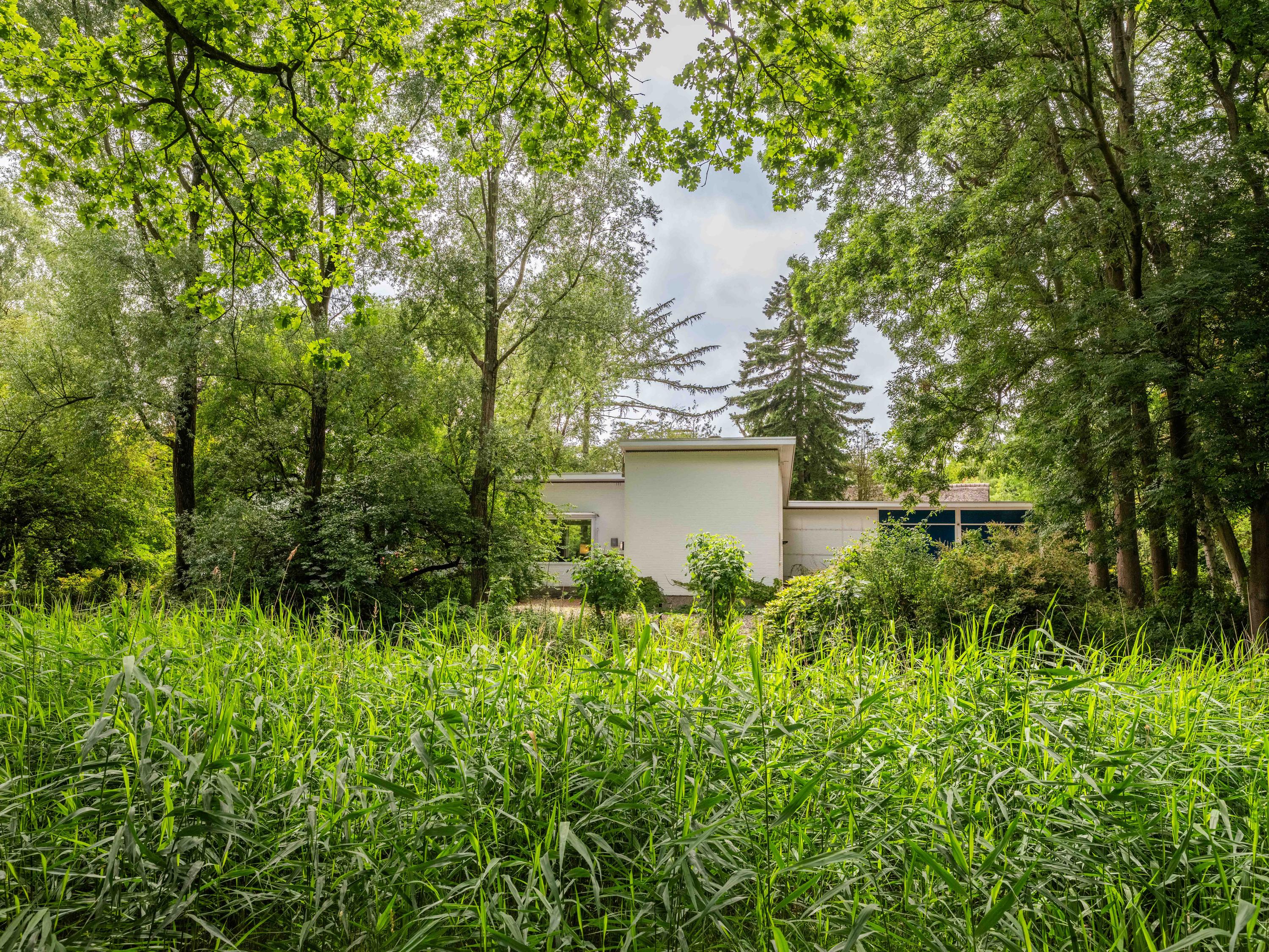 Licht, lucht en ruimte zijn de sleutelwoorden van deze woning, gebouwd in de jaren '50 en sindsdien zorgvuldig onderhouden. De principes van de Nieuwe Zakelijkheid komen tot uiting in de platte daken, strakke lijnen en de naadloze verbinding tussen binnen en buiten. De grote schuifpui in de woonkamer vervaagt de grens tussen interieur en exterieur, terwijl de loggia een perfecte overgang biedt naar de omringende natuur. U dient hier zelf wel nog hedendaags woongenot en enige luxe aan toe te voegen, maar dan krijgt u ook wat.