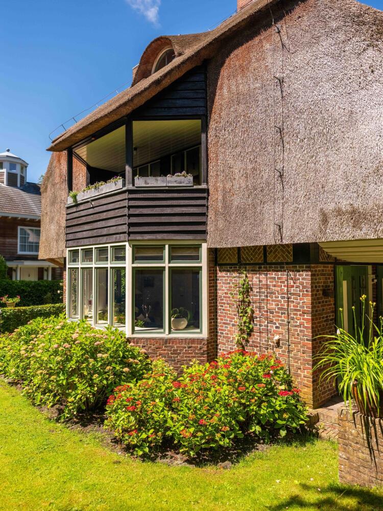 U bereikt de villa via een royale oprit met ruimte voor meerdere auto’s. Aan de voorzijde valt de imposante rieten kap direct op. Vanuit de entree komt u in de hal, die toegang geeft tot zowel de woonkamer als de woonkeuken. De keuken is voorzien van Bosch combimagnetron, AEG-inductiekookplaat, vaatwasser, koel-vriescombinatie, recirculatiekap en heeft vloerverwarming. De keuken heeft openslaande deuren naar een groot terras en de achtertuin. Aangrenzend aan de keuken ligt de bijkeuken met vloerverwarming, wasmachine- en drogeraansluiting en een douche met toilet en fontein.