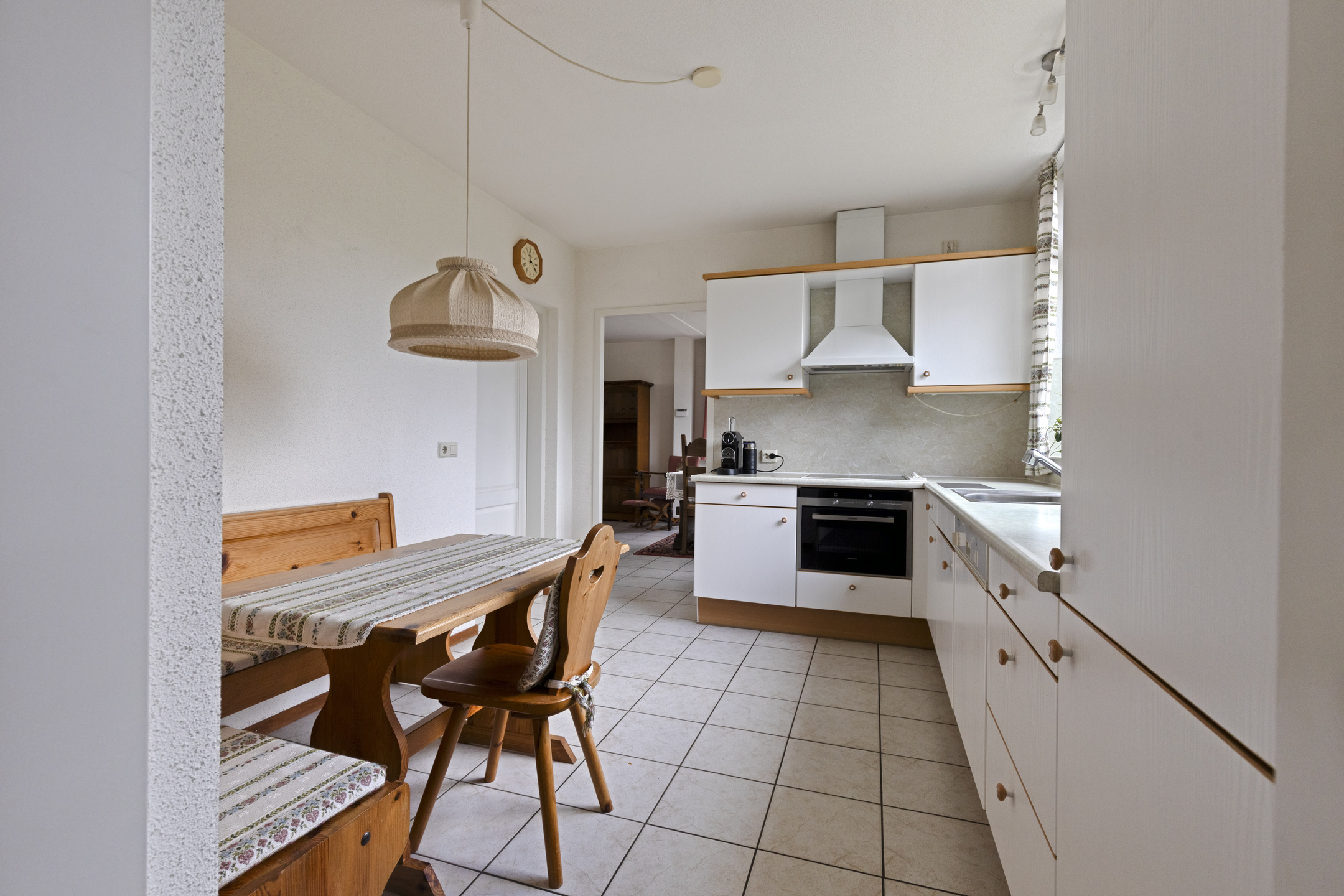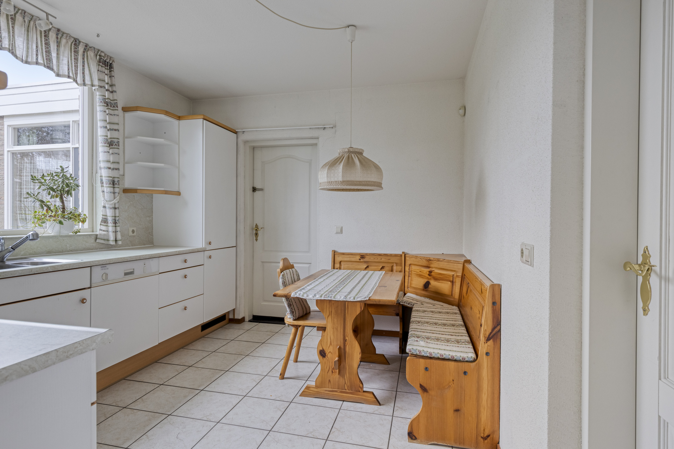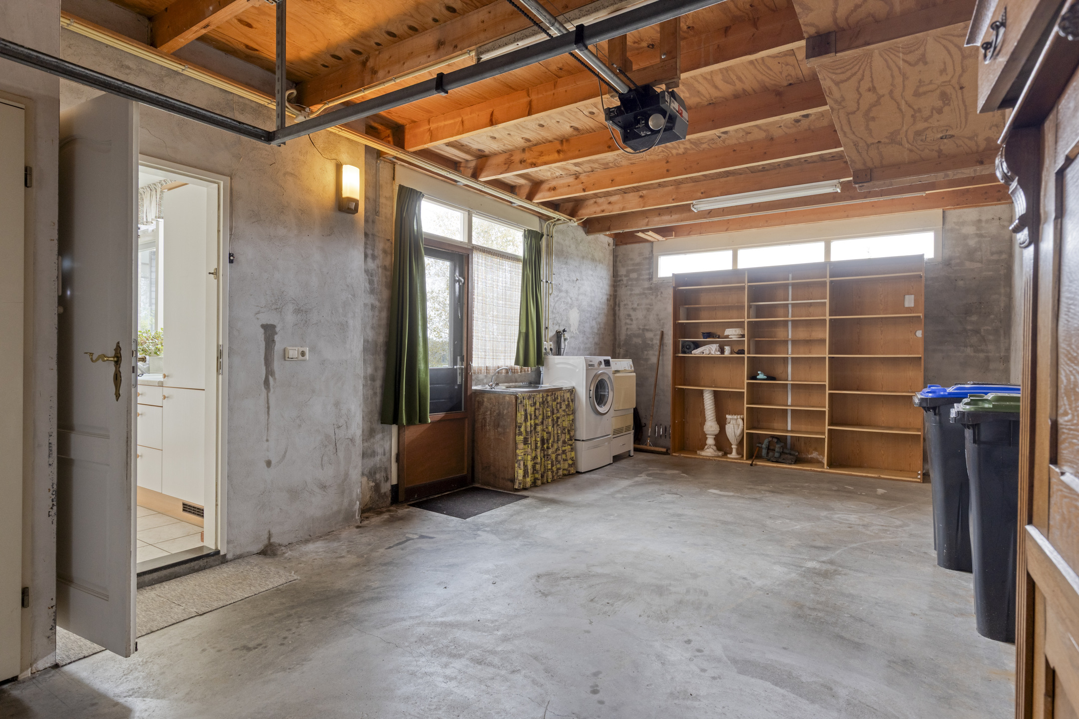 Via de keuken bereik je de inpandige garage. Hier vind je de aansluitingen voor de wasmachine en droger en de meterkast. Vanuit de garage is er ook toegang tot de achtertuin.
