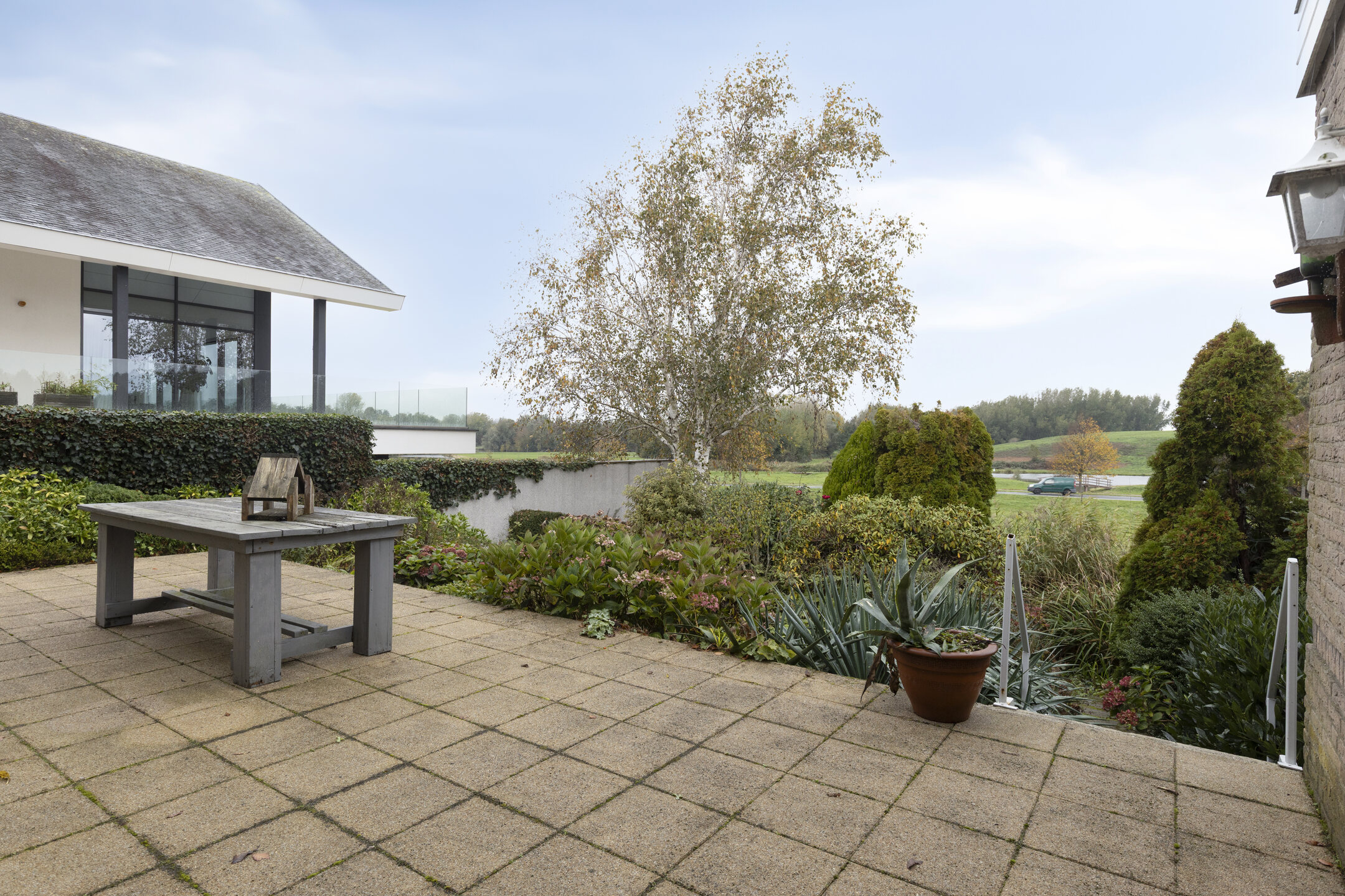 De royale woonkamer aan de voorzijde is heerlijk licht dankzij de grote raampartijen en is voorzien van een plavuizen vloer met vloerverwarming. Via de schuifpui loop je zo de tuin in. De eetkamer sluit aan op de keuken, die is uitgevoerd in L-opstelling en voorzien van diverse inbouwapparatuur zoals een vaatwasser, koel-vriescombinatie, keramische kookplaat, afzuigkap en spoelbak met mengkraan.
